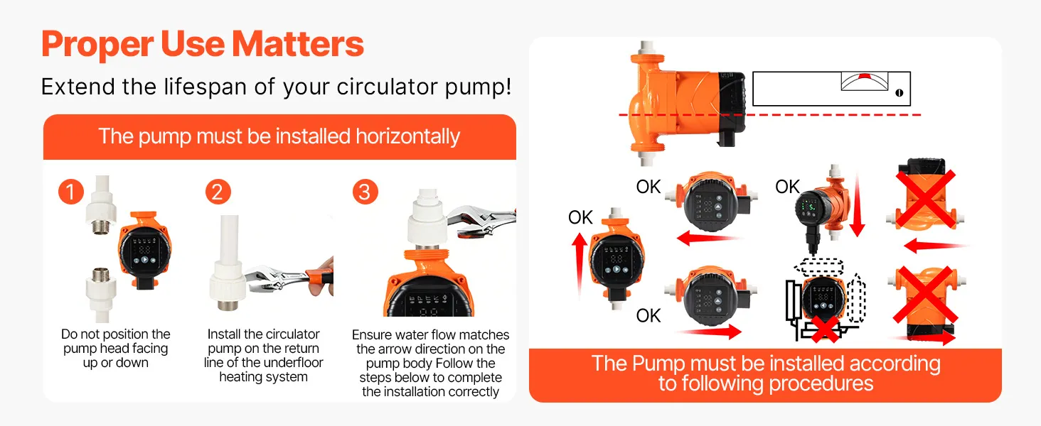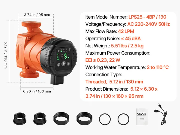 Comes with a complete set of installation accessories—no extra purchases required. This circulator pump allows for flexible installation with household appliances, industrial equipment, and gas systems.