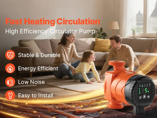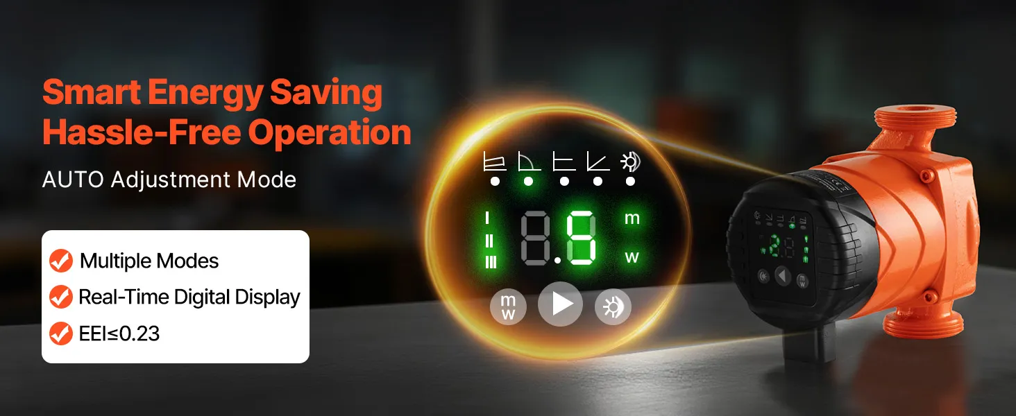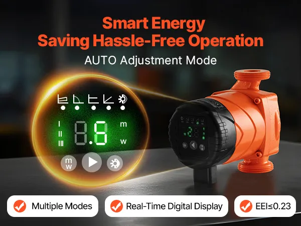 Equipped with a powerful yet low-consumption permanent magnet motor, the high efficiency circulator pump delivers strong output with stable operation and a long lifespan. The automatic night-saving mode reduces workload during off-peak hours, helping save electricity and lower energy costs.