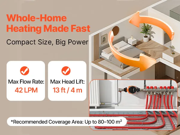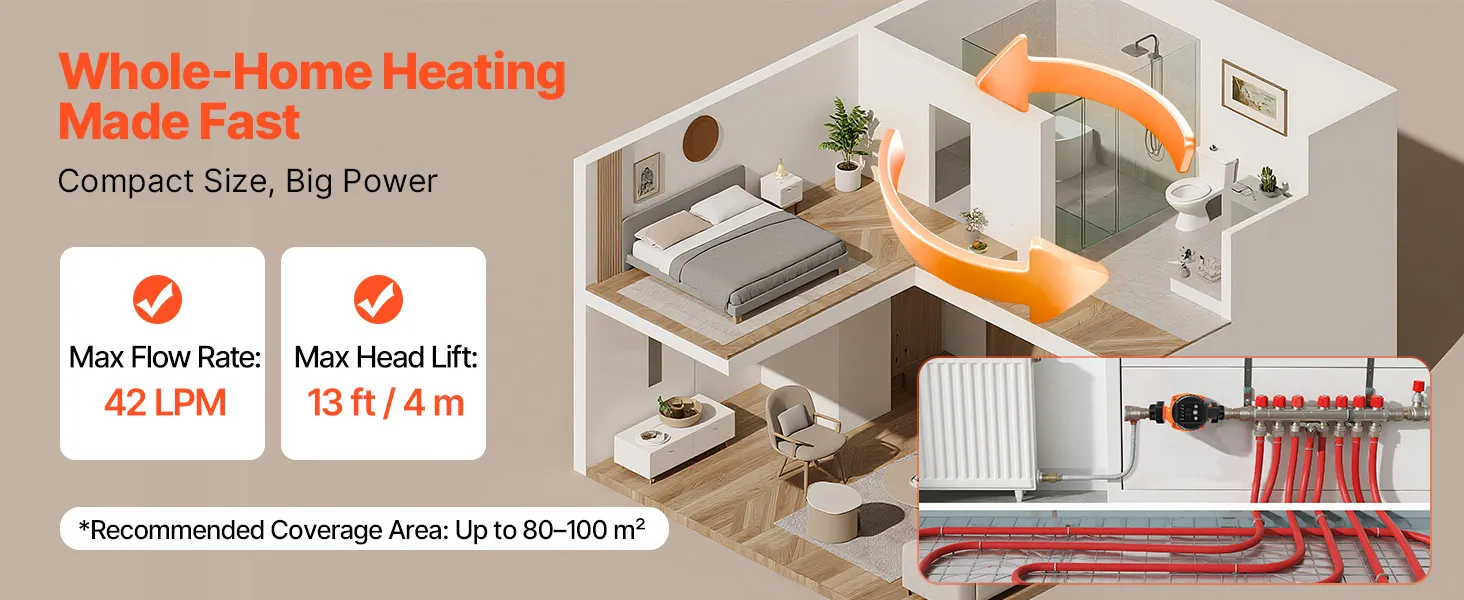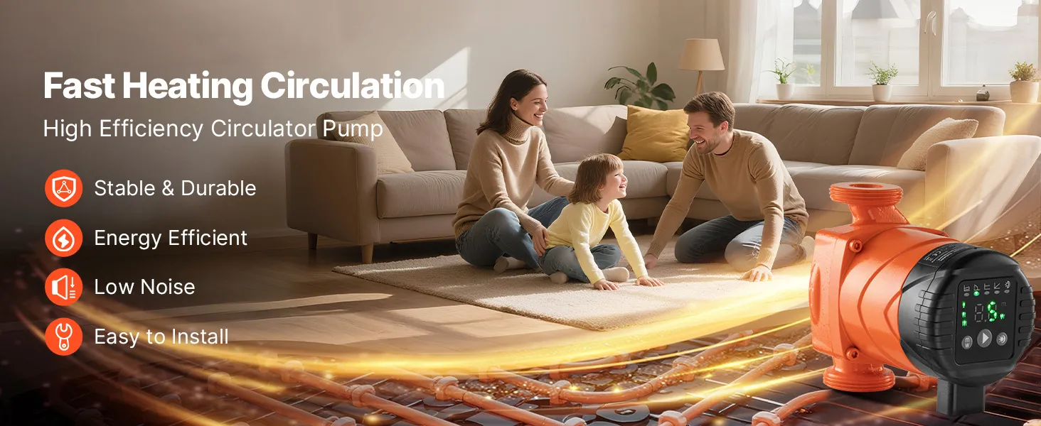 Designed to handle a wide head range, this cast iron circulator pump adapts easily to various home sizes and layouts. It ensures consistent hot water circulation to keep your living spaces warm, comfortable, and energy-efficient all season long.