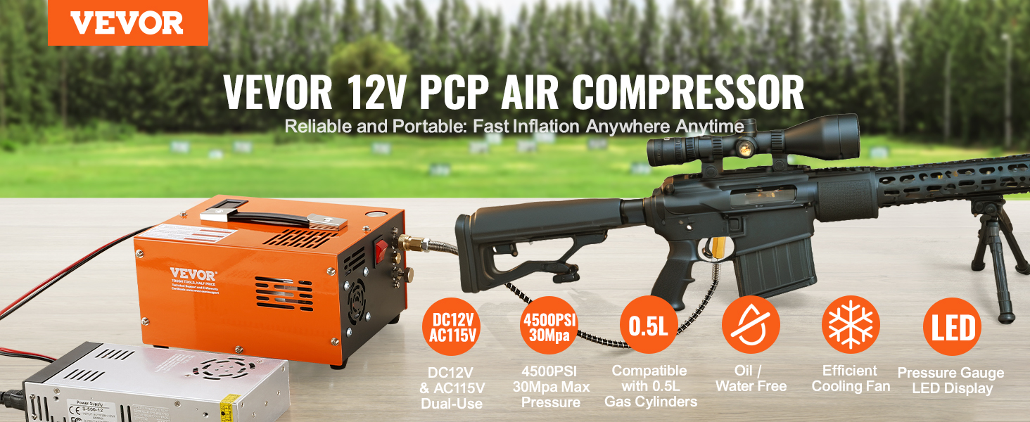 • Smart Dual Display: VEVOR PCP air compressor features an intelligent dual display system that provides real-time pressure and temperature readings. With 4500PSI/30Mpa maximum pressure, it perfectly meets the needs of various airguns. Maximum Temperature: 80℃ / 176 ℉.