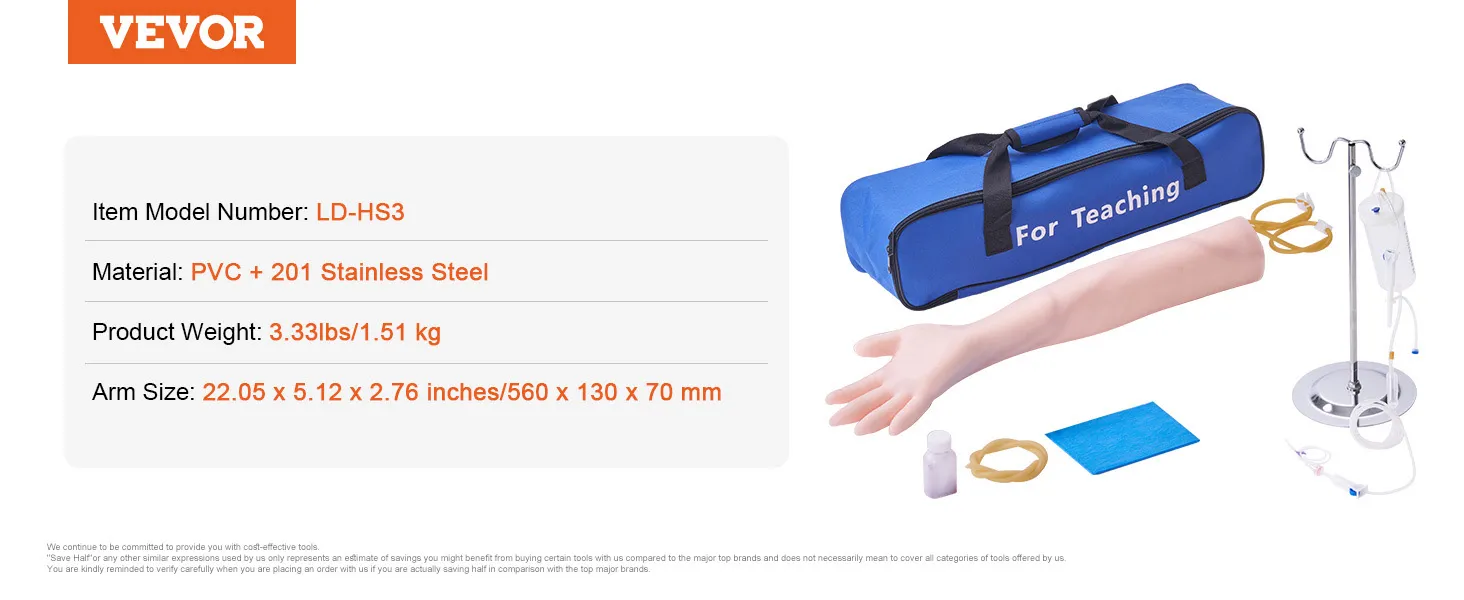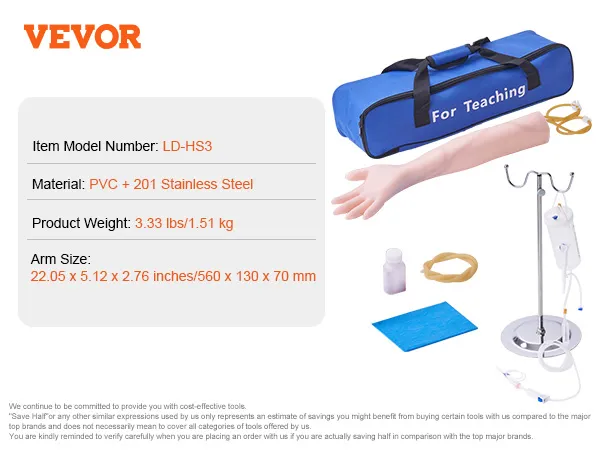 VEVOR Phlebotomy Practice Kit, IV Venipuncture Intravenous Training Kit, High Simulation IV Practice Arm Kit with Carrying Bag, Practice and Perfect IV Skills, for Students Nurses and Professionals