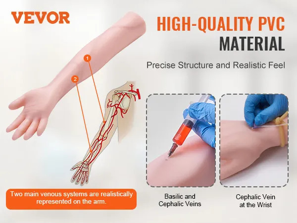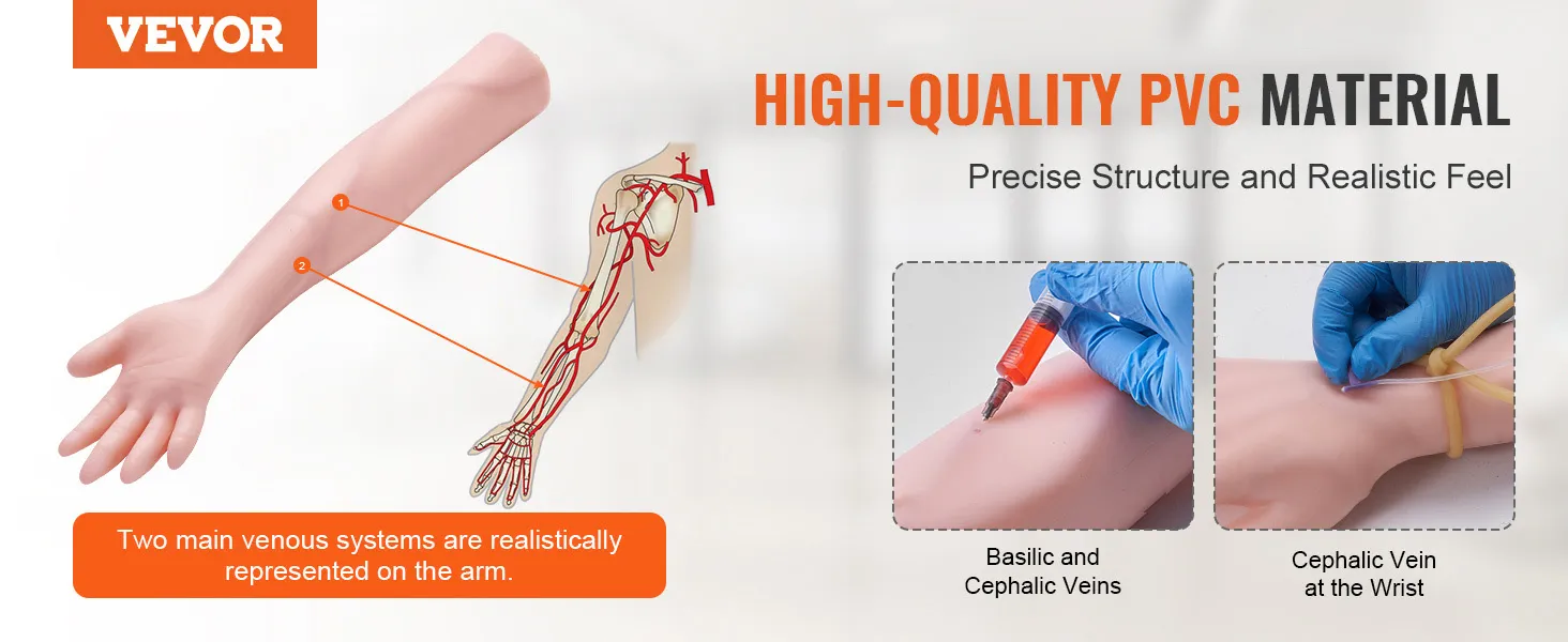 Crafted from top-notch materials like imported plastic, premium latex, and PVC, our IV practice arm provides a lightweight yet sturdy build for a lifelike experience.
