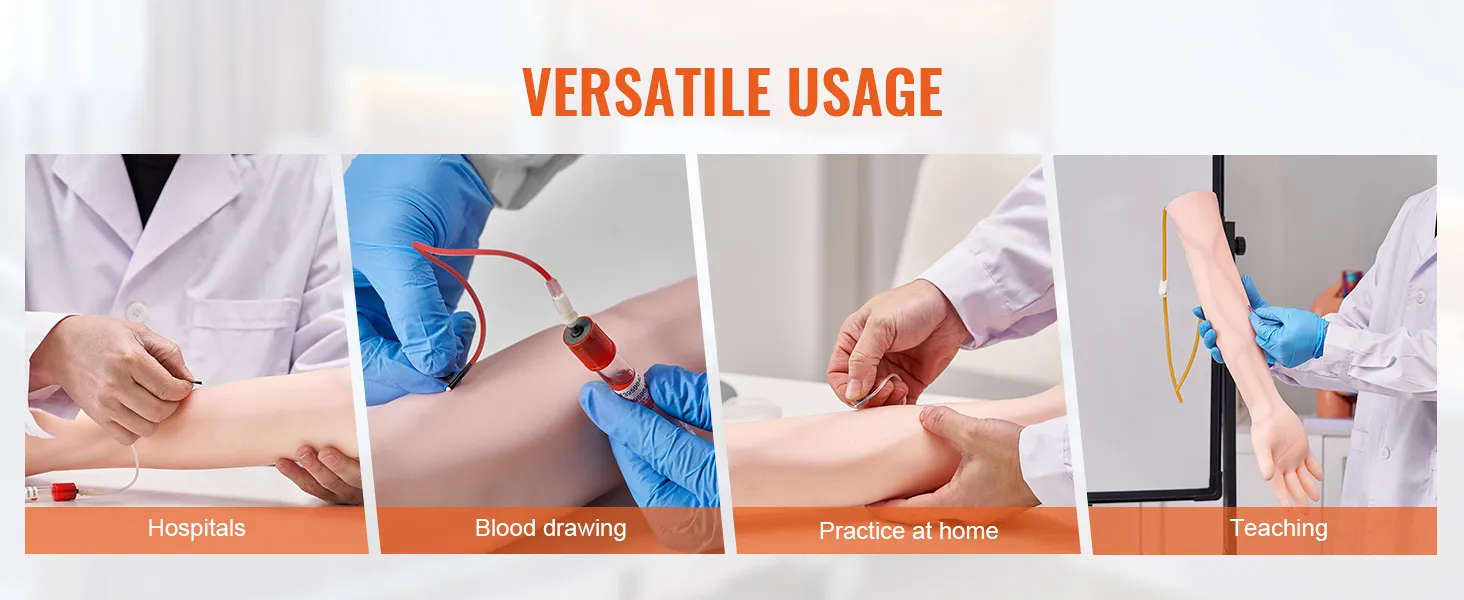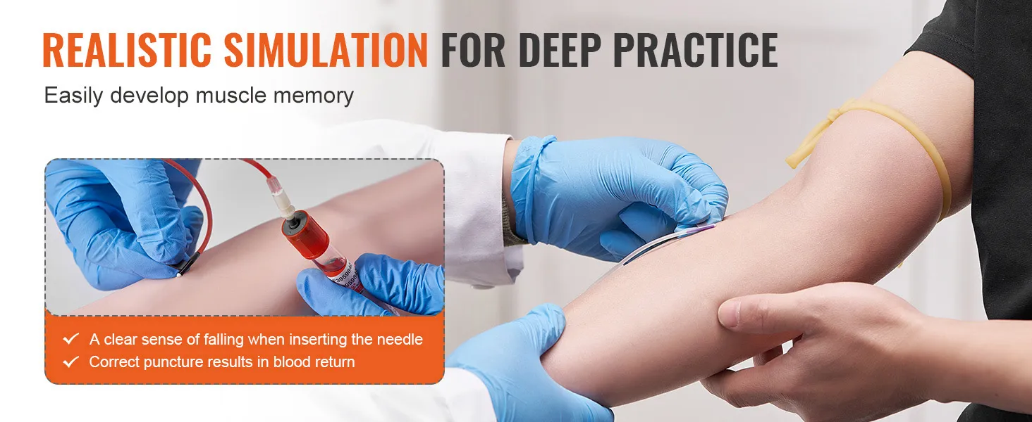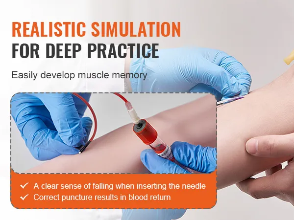 The phlebotomy arm's detachable veins and skin make assembly a breeze. Plus, they're replaceable, saving you time and cost while ensuring seamless practice sessions.