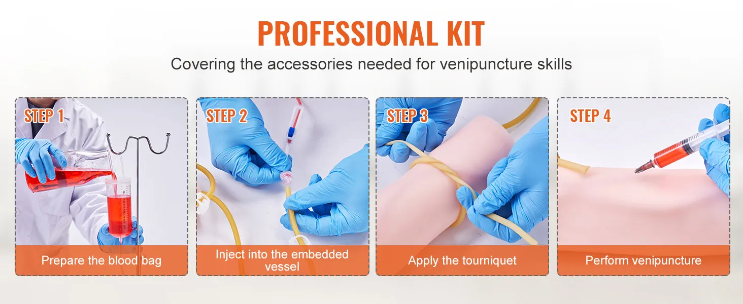 Our IV kit is perfect for students and interns to practice their bloodletting, venipuncture, and puncture skills. It's a must-have for mastering these crucial techniques.