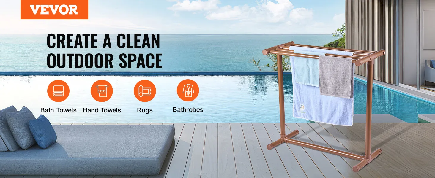 Perfect for outdoor poolside settings or spa shops, the outdoor towel rack elevates your waterside gathering area with a spa-grade touch. Crafted from durable materials and featuring a compact space-saving design, it ensures quick ventilation and towel drying while remaining sturdy and long-lasting.
