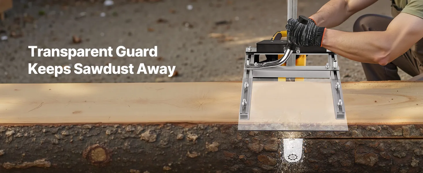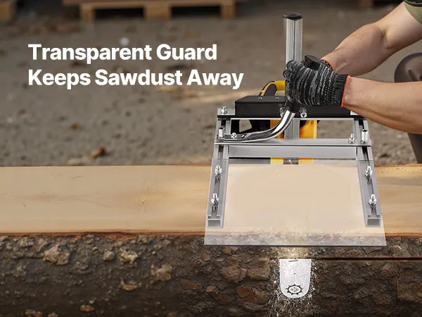Equipped with a transparent shield to effectively block flying wood chips, ensuring clear visibility and operation security.