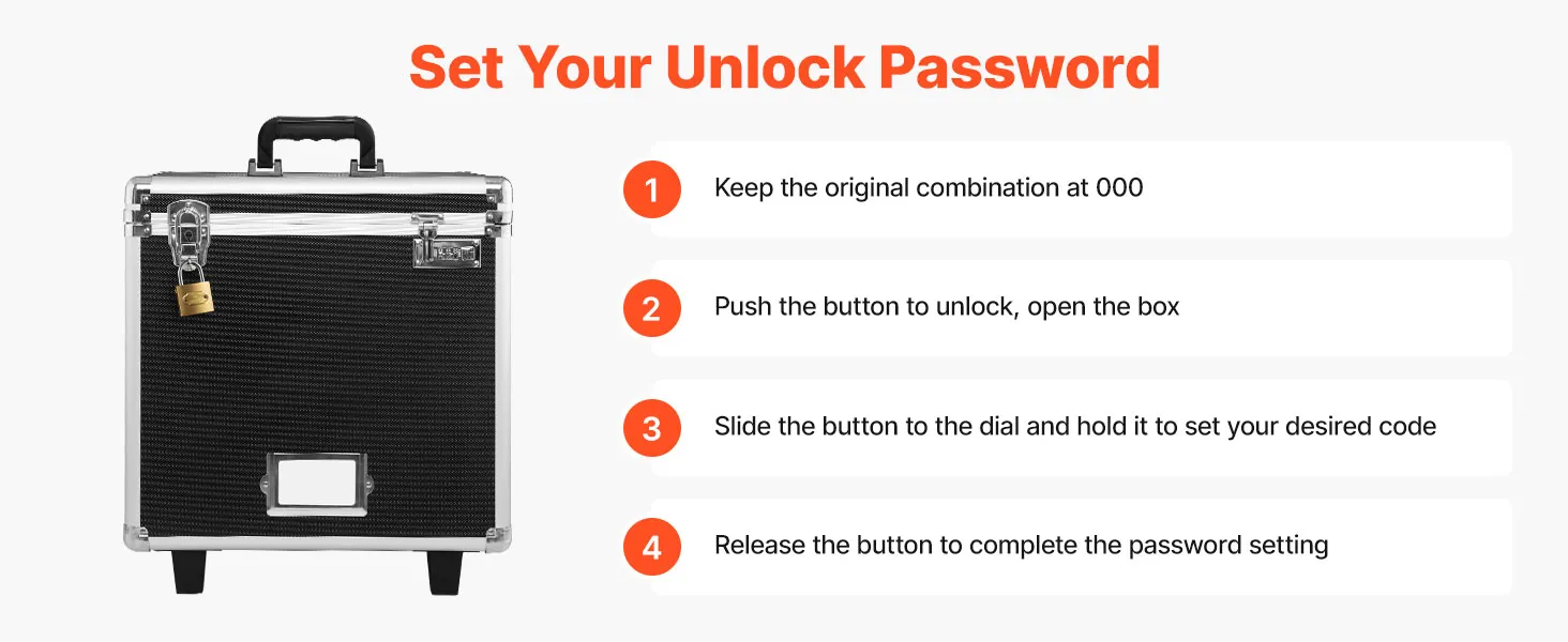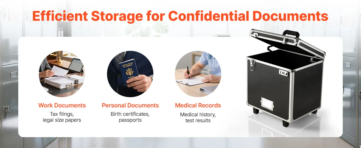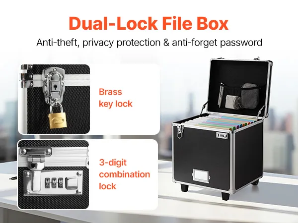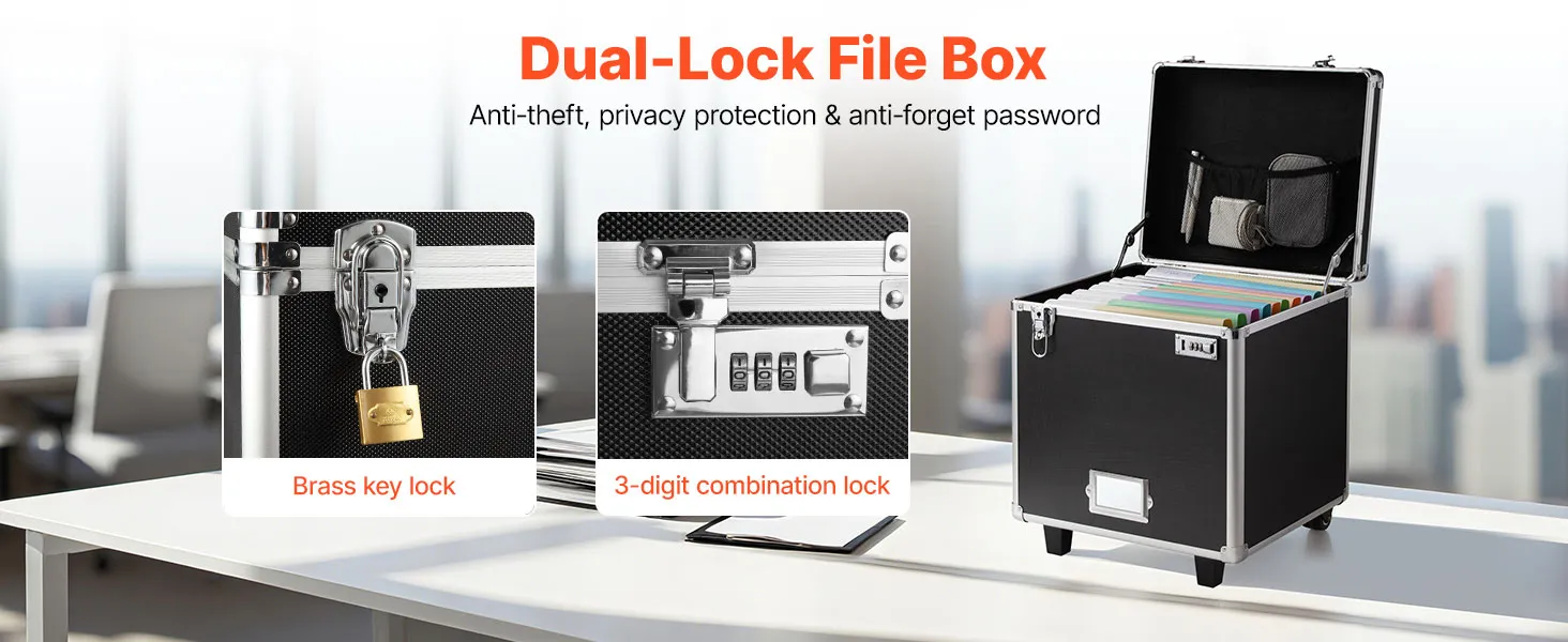 This file storage box features a 3-digit combination lock plus a key lock. It gives you flexible choices—privacy with a password or simple access with a key.