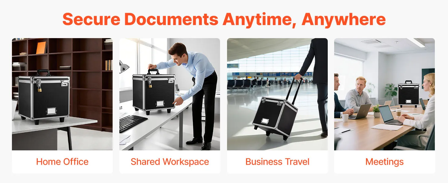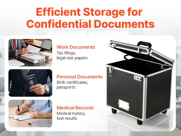 This rolling file box neatly stores tax files, passports, medical records, and more. It keeps your private documents secure and helps you stay organized every day.