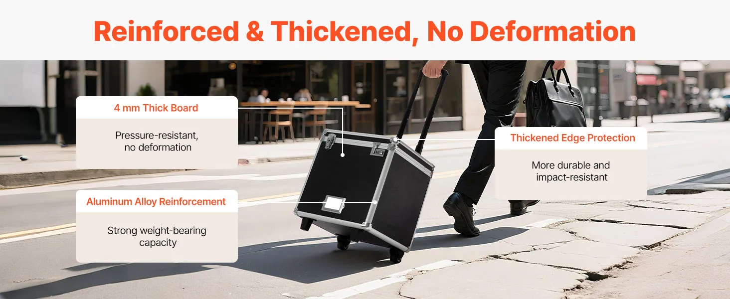 This hand pull file case uses 4 mm thick panels and an aluminum alloy frame. Reinforced corners add impact resistance, giving your files long-lasting and secure protection.