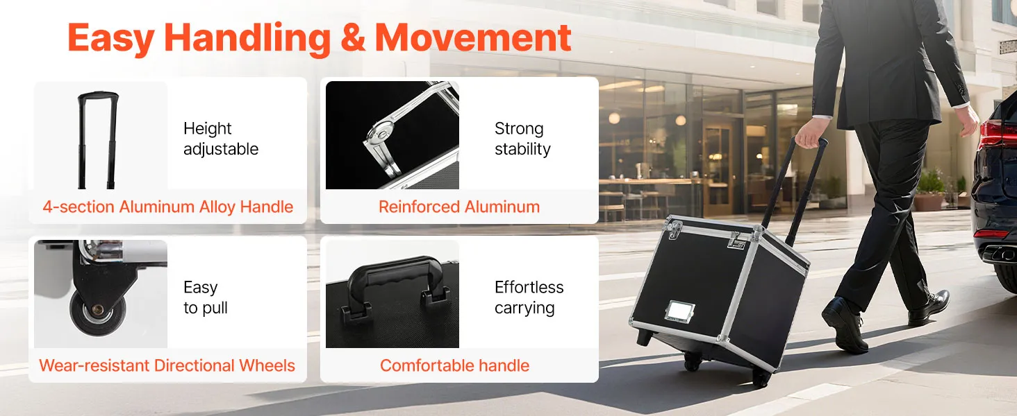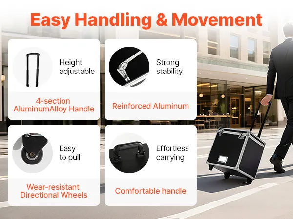 This portable file storage box includes a 4-section telescopic handle, sturdy wheels, and a comfy grip. You can push or pull it smoothly, making transport light and steady.
