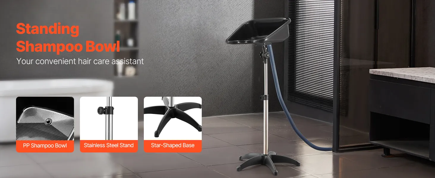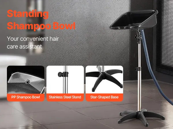VEVOR Portable Shampoo Bowl, Shampoo Sink with Adjustable Height & Angle, Salon Hair Wash Sink with Drain Hose and Star-Shaped Support Base for Barbershop Beauty Spa Center Home Use