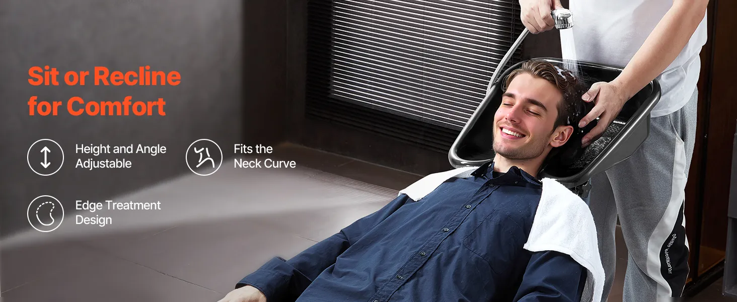The edges of the salon sink are carefully crafted to gently fit the neck curve. With adjustable height and angle, it provids comfort whether sitting or reclining, ensuring a relaxing and enjoyable hair care experience.
