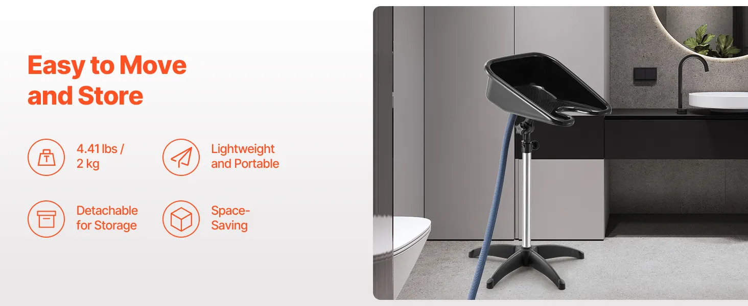 Our lightweight shampoo sink provides a comfortable washing experience for post-surgery patients, the elderly, pregnant women, and children. It is suitable for salons, barbershops, outdoor use, and home settings.