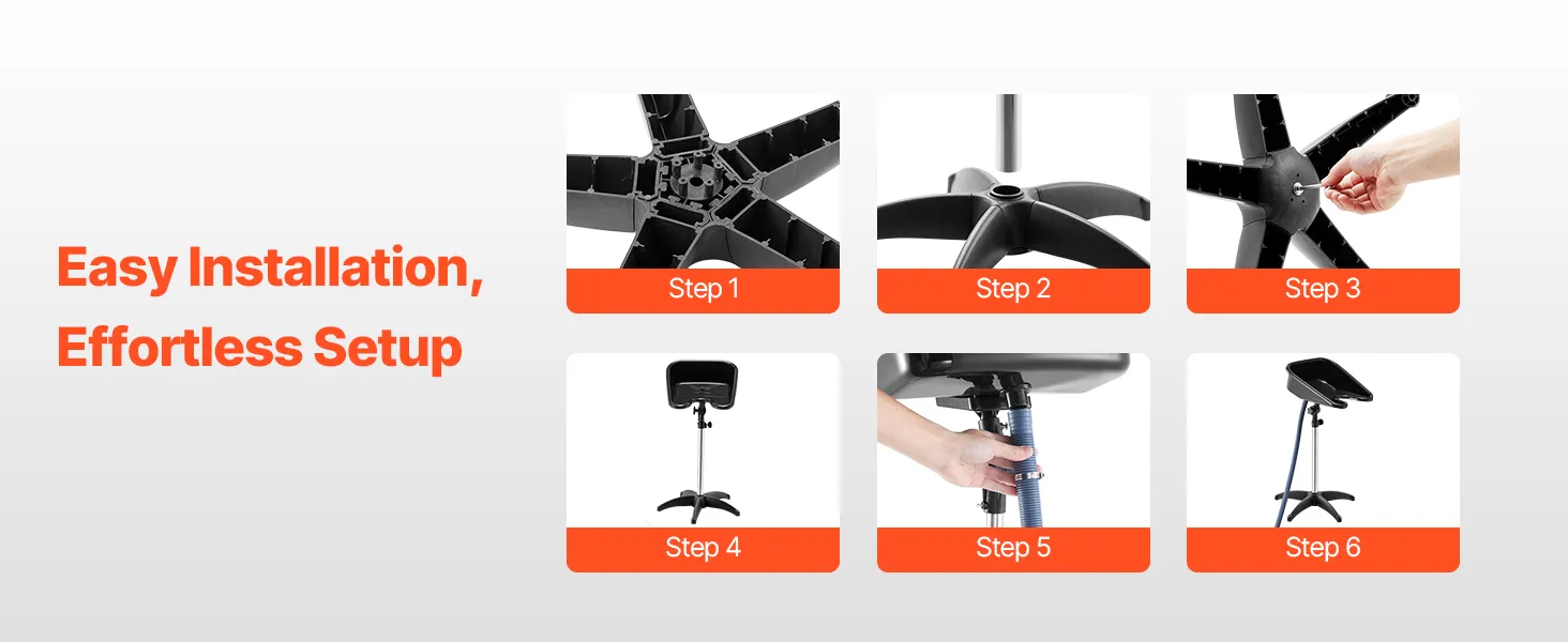The portable shampoo bowl can be quickly installed and disassembled on your own by following the provided instructions or installation video. It's simple and convenient for daily mobility, cleaning, and storage.