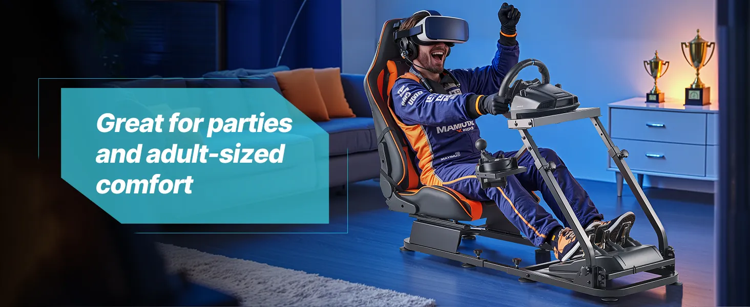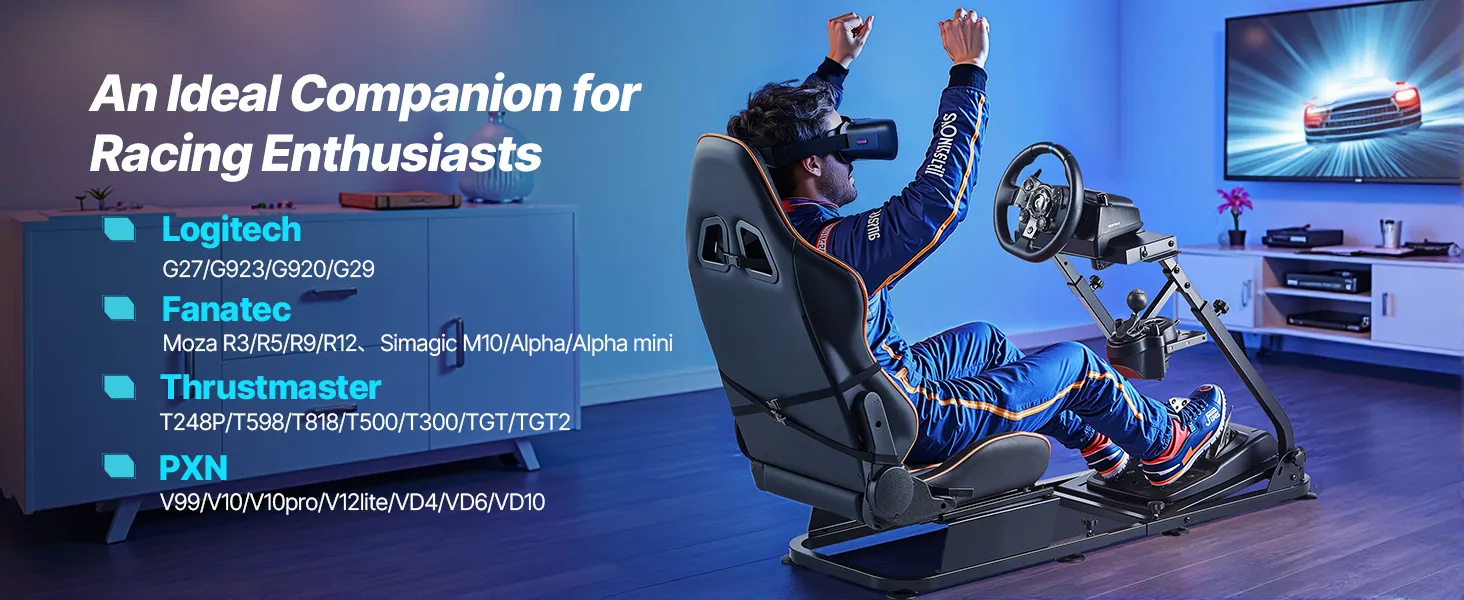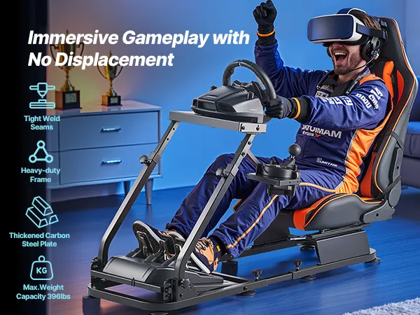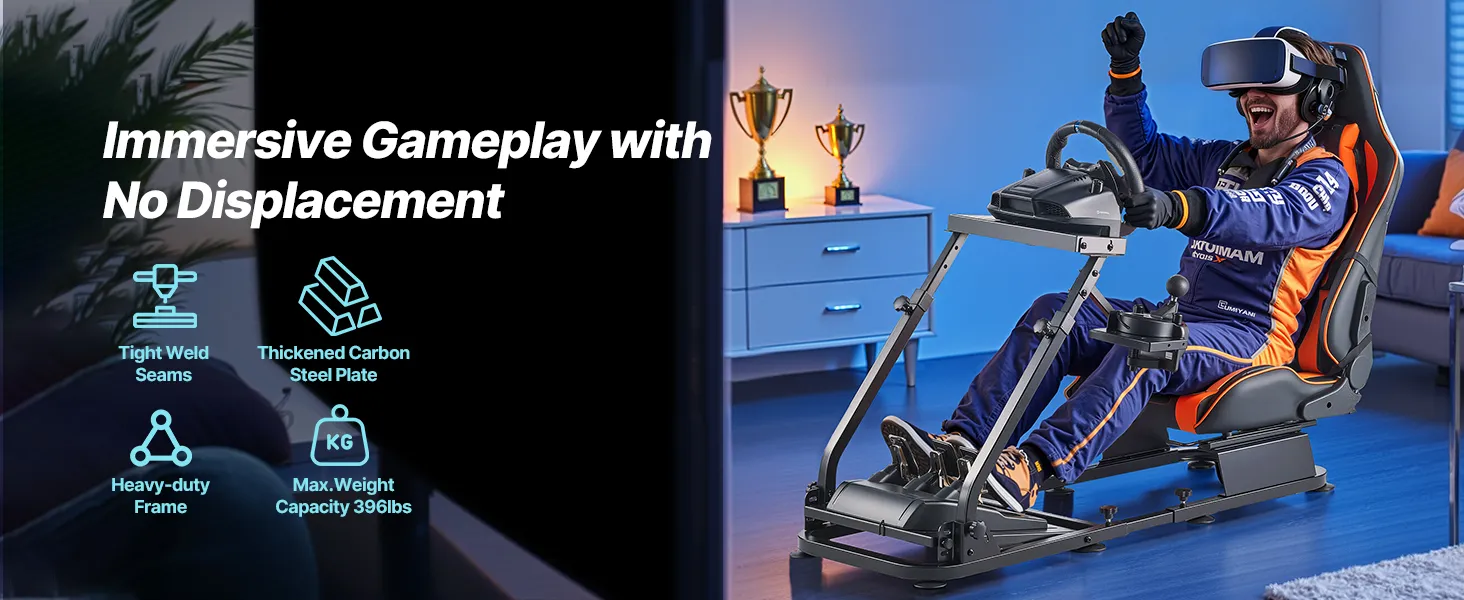 Struggle with unstable wheels, uncomfortable posture, or back pain after long racing sessions? This Heavy-Duty Racing Simulator Cockpit Stand offers an immersive experience. Reinforced frame ensures stability and weight support. Breathable seat reduces fatigue during long play.