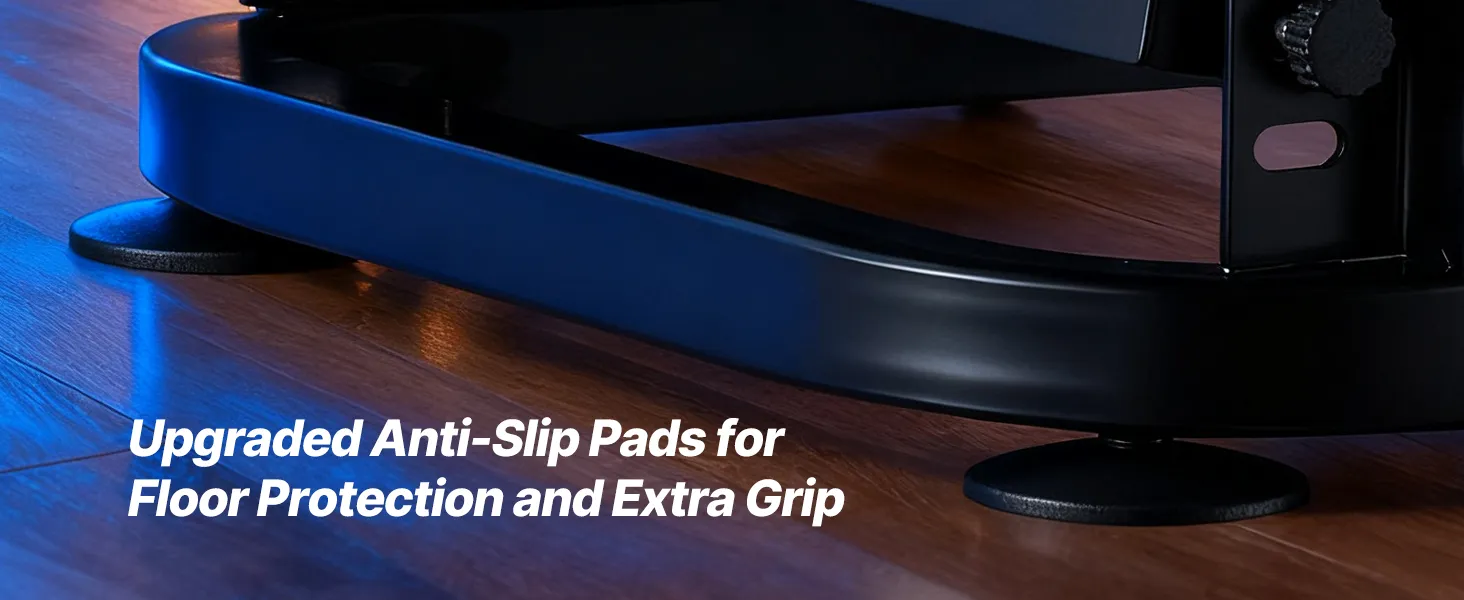 Balances the seat's center of gravity to reduce the risk of tipping during intense movements.