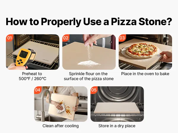 • Easy to Clean: Once cool, simply wash the cordierite pizza stone with warm water, wipe with a damp cloth, then dry. With long-term use, the food cooked on it will have a richer flavor. Note: First use: Clean, dry beforehand, then heat gradually for longer service life
