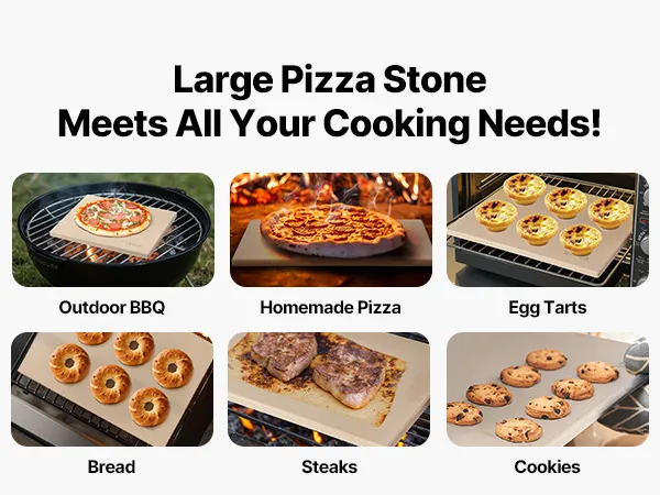 • Wide Applications: This large baking stone fits ovens, charcoal grills, barbecues, or stone ovens. It can create crispy pizzas, pastries, and breads, or to reheat food to restore its crispiness, ideal for home kitchens, outdoor grills, and parties. Note: Measure your grill and the inside of your oven to choose the proper size, ensuring at least 0.8-2 in (2-5 cm) of clearance on all sides