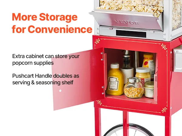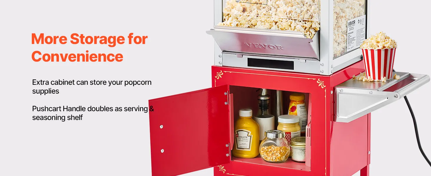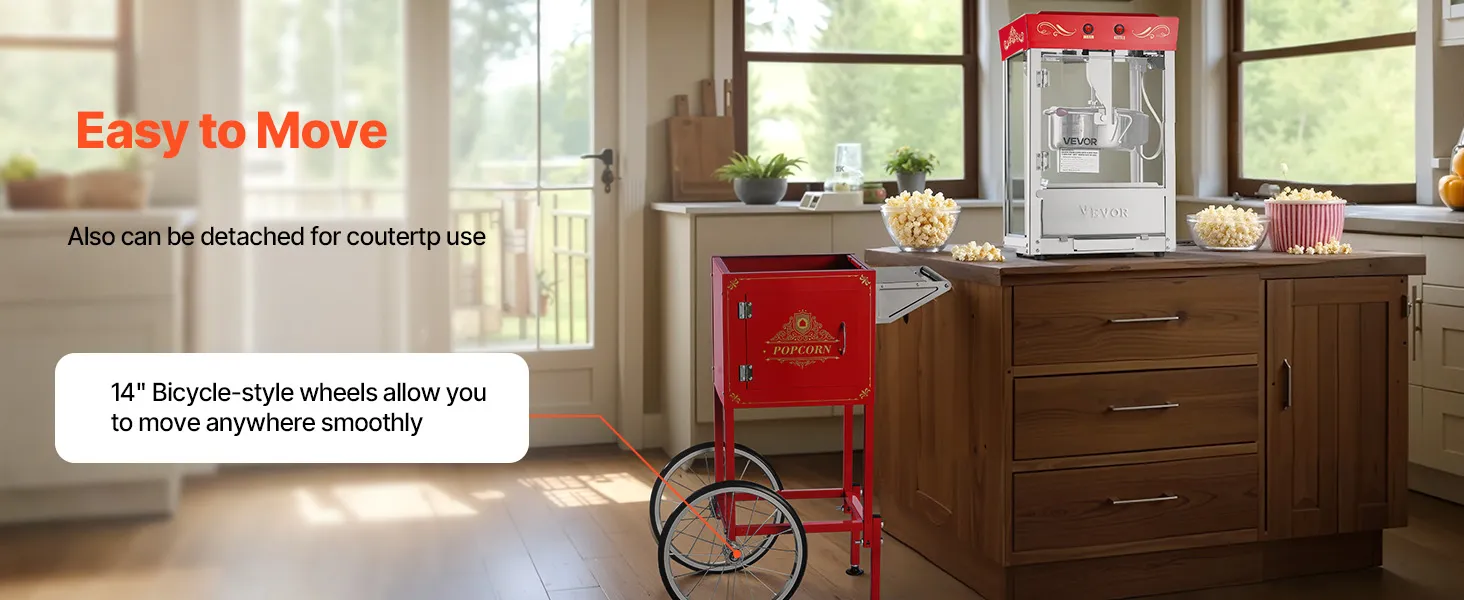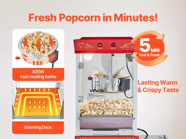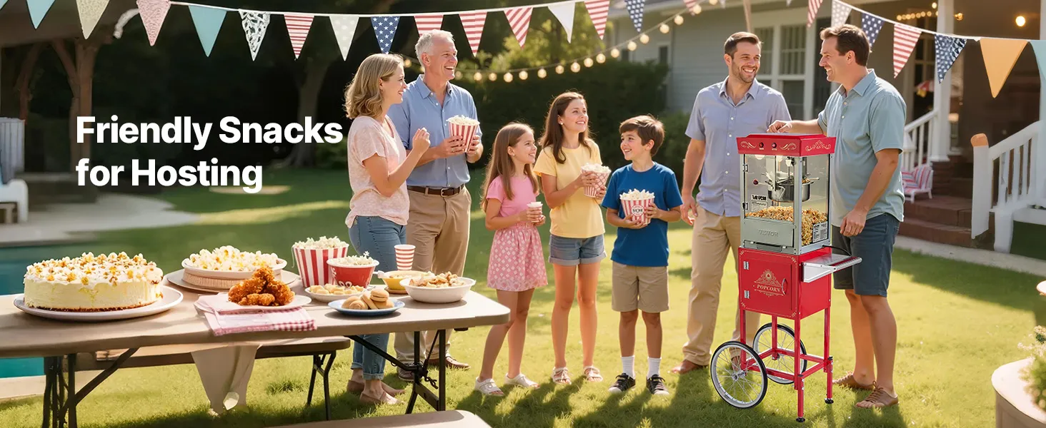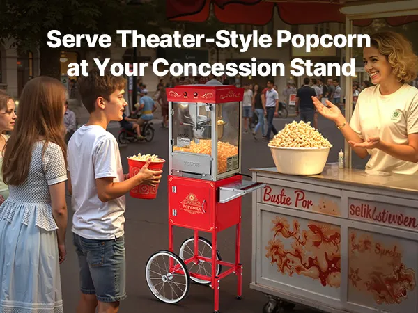 Q1: How do I keep my popcorn from being unpopped and having a soft, burnt texture?A1: Unpopped kernels, soft or burnt corn are caused by insufficient oil. We provide a recipe guide for reference. Another reason is using high-humidity corn, switching to low-humidity one can resolve this. Condensation on the walls during use is normal.Q2: Is the popcorn machine easy to disassemble and clean? A2: Our popcorn machine features tool-free detachable parts (kettle, kernel catcher) for cleaning in seconds.Q3: Can I use this outdoors for events?A3: Yes! The machine is built for both indoor and outdoor use. Pair it with our dust-proof lid for outdoor events like carnivals or backyard parties.