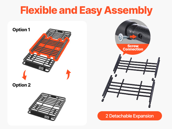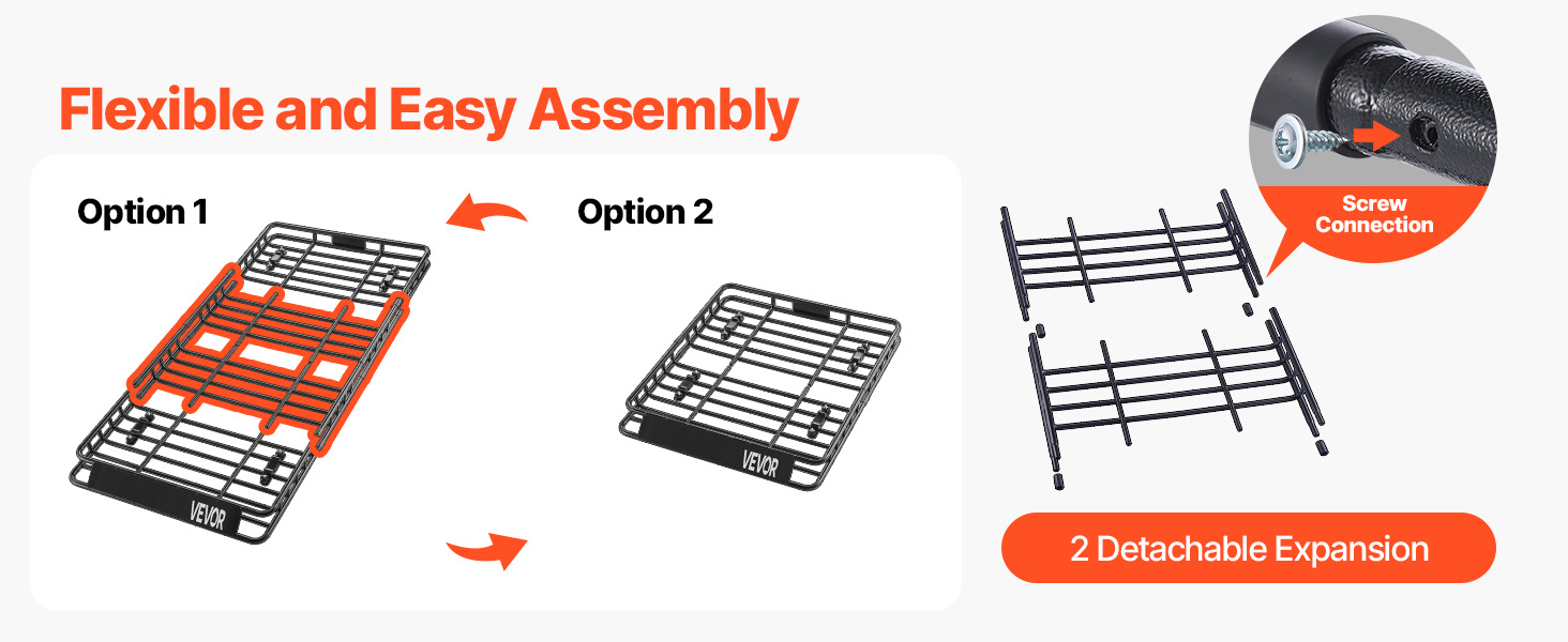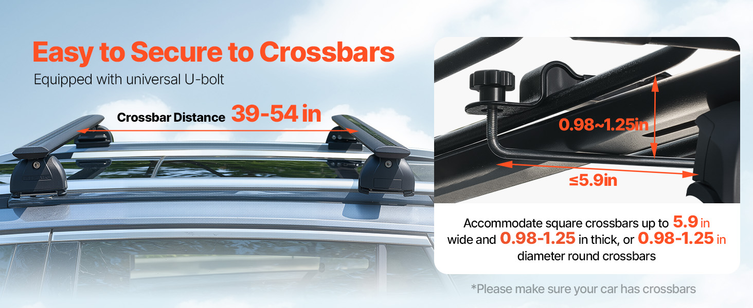 With four universal U-bolts, installation and detachment are a breeze. This roof rack cargo basket easily fits most roof crossbars. The included screws allow for simple assembly, and the plastic sleeve keeps the screws from damage.