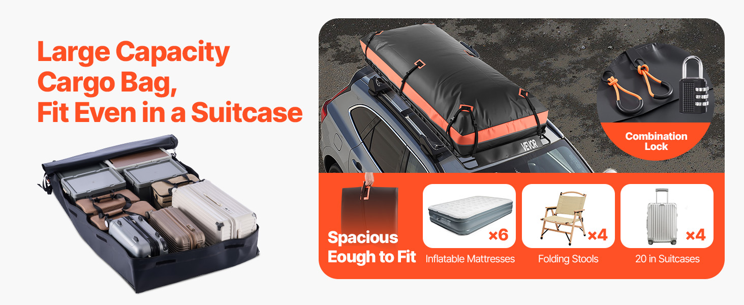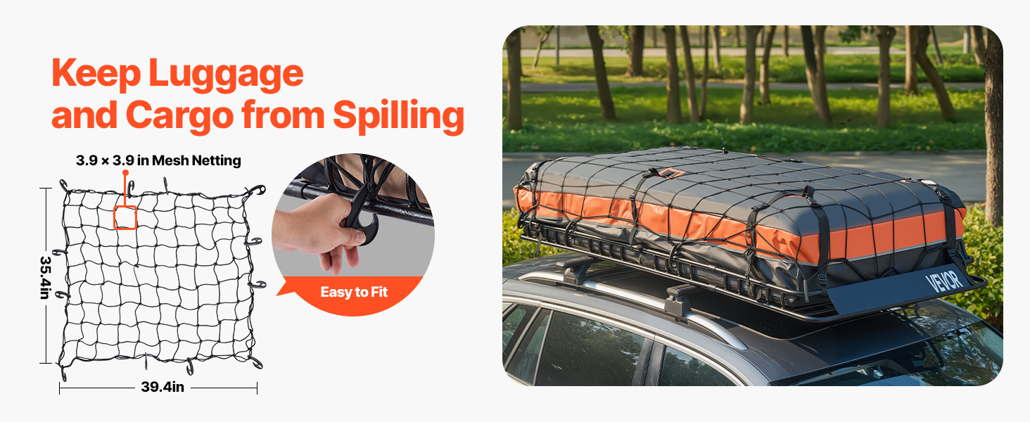 Bring all your favorite camping gear and maximize interior vehicle space for family and friends. This set includes a roof rack basket, cargo bag, and roof rack net. It allows your roof to carry more luggage while providing protection against drops and weather damage. Enjoy your journey!