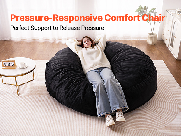 VEVOR Bean Bag Chair, Giant BeanBag Chair with Removable & Washable Cover for Adult, Dutch Velvet & High-Density Foam Filling Round Bean Bag with Handle and Side Pocket for Living Room Bedroom, Black