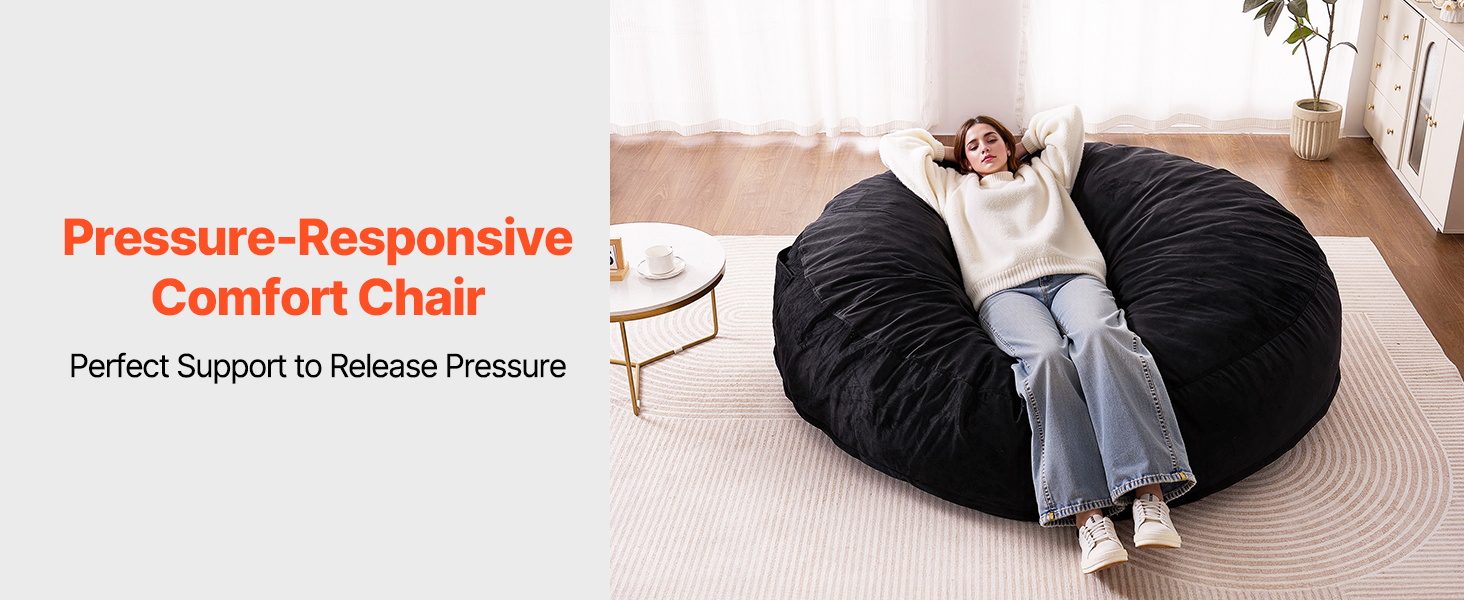 Filled with high-density memory foam, this bean bag chair offers firm yet bouncy support that won’t lose its shape, no matter how long you sit or relax.