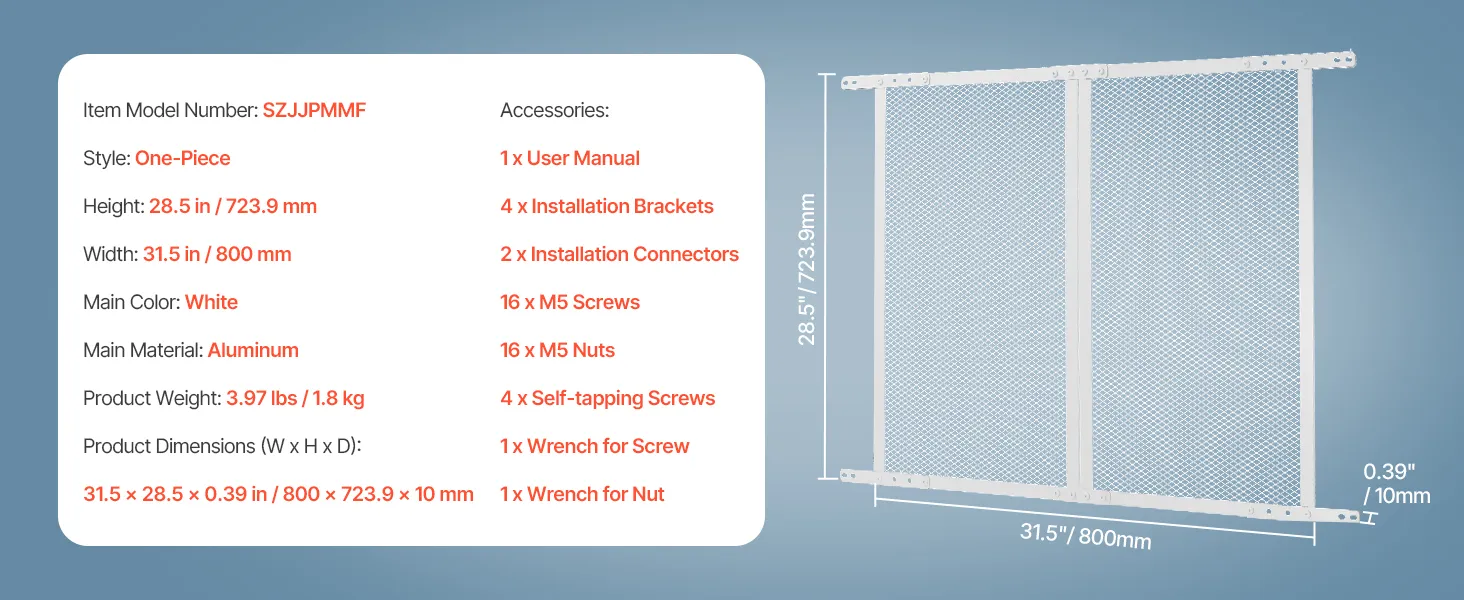 VEVOR RV Screen Door Protector, 800x723.9 mm Door Grille, Easy to Install and Disassemble, Reinforced Breathable Protective Mesh, Aluminum Alloy Camper RV Entry Protector for Pet Protection, White