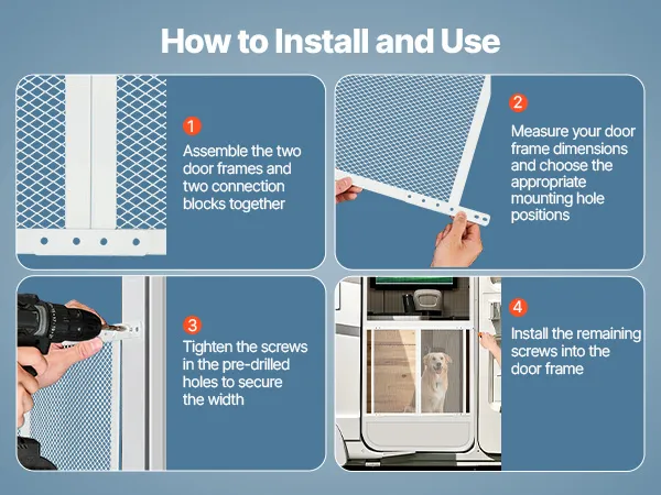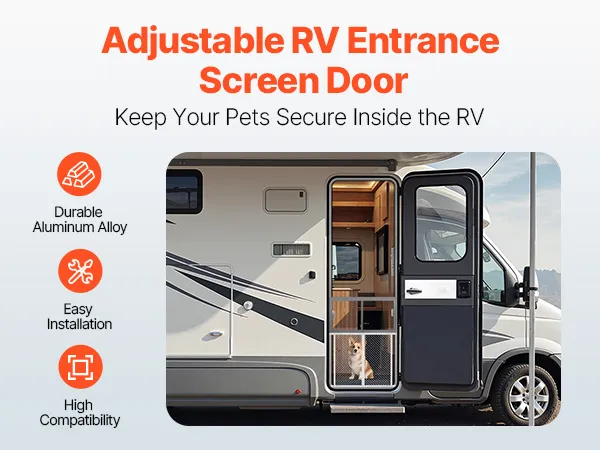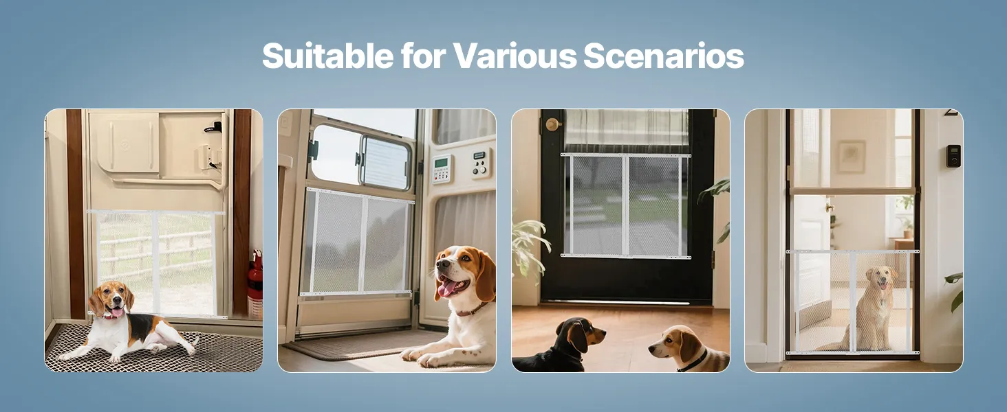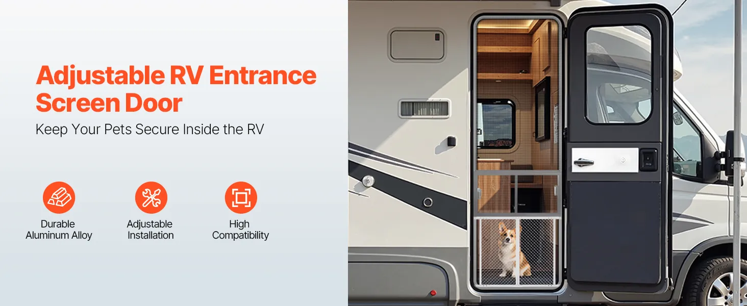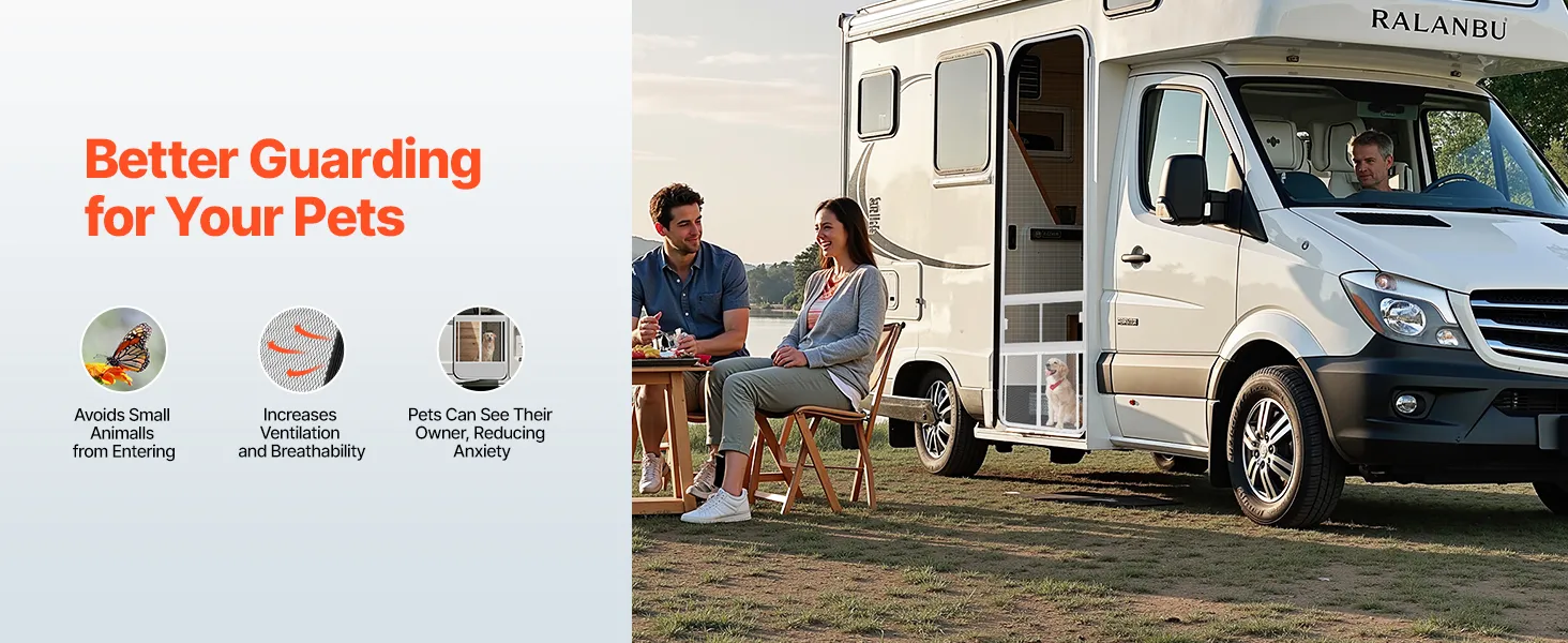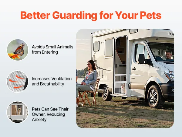 Specially designed for pet owners, this RV screen door protector ensures your pets stay securely inside the RV while enjoying fresh air circulation, avoiding them from running around during RV travels.
