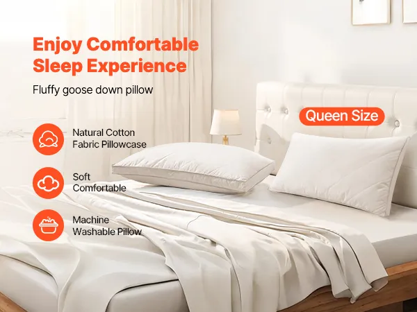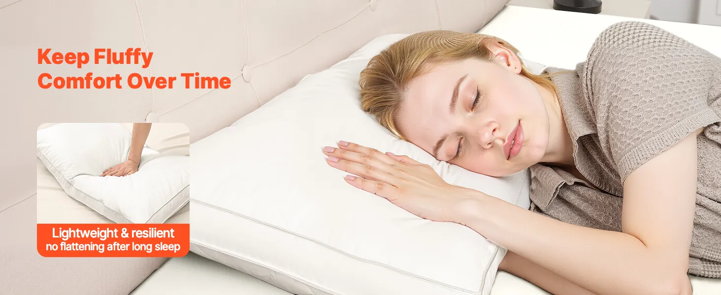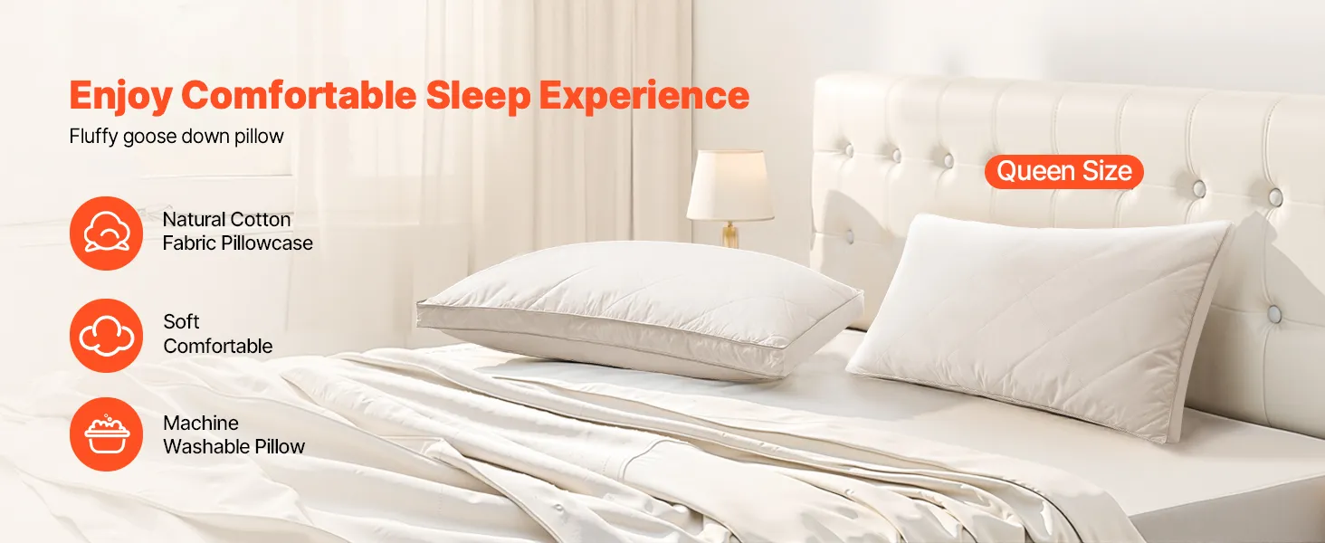 VEVOR Bed Pillows for Sleeping, Set of 2, Queen Size Luxury Quality Hotel Pillows with Original Down Alternative Filling, Supportive and Fluffy, Bedding for Back, Stomach and Side Sleepers, White