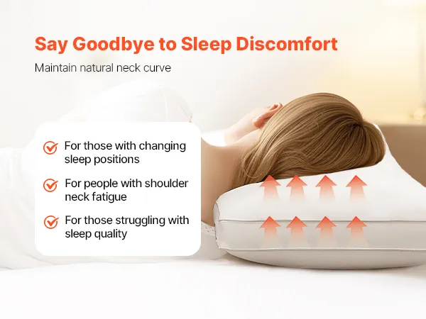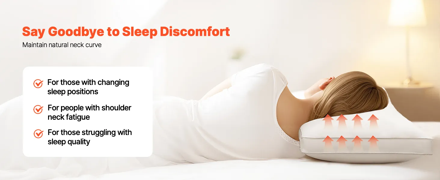 Our sleeping pillow keeps your neck's natural curve, easing pressure points and supporting changing sleep positions, neck fatigue, and poor sleep quality for restful nights.