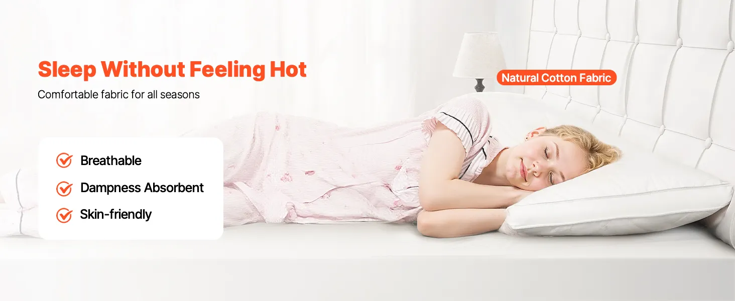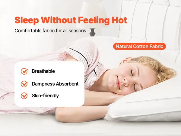 The natural cotton fabric of our soft pillow is skin-friendly, soft, and breathable, ensuring comfort all year round with a dry and fresh feel.