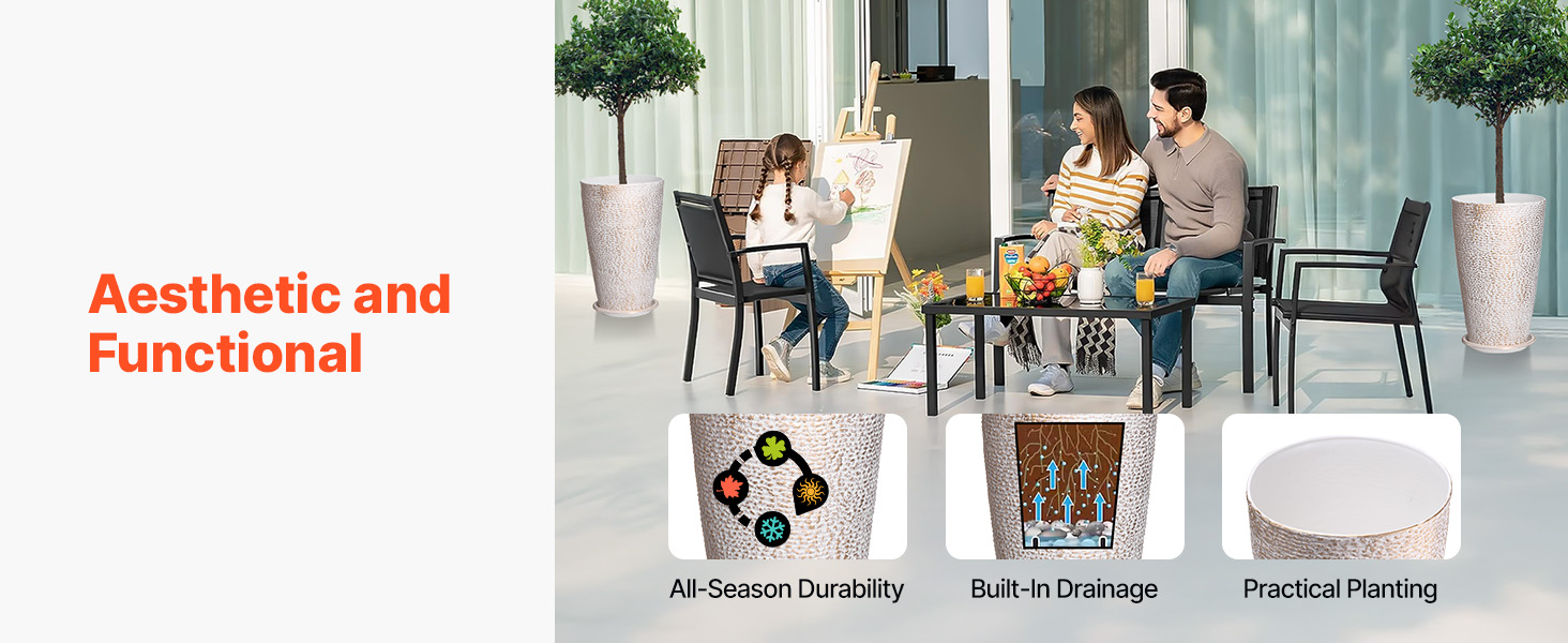 This tall planter blends elegant design with durable materials to enhance your space with natural charm. Featuring an efficient drainage system and reliable outdoor performance, it brings life to every corner and effortlessly upgrades your living environment!