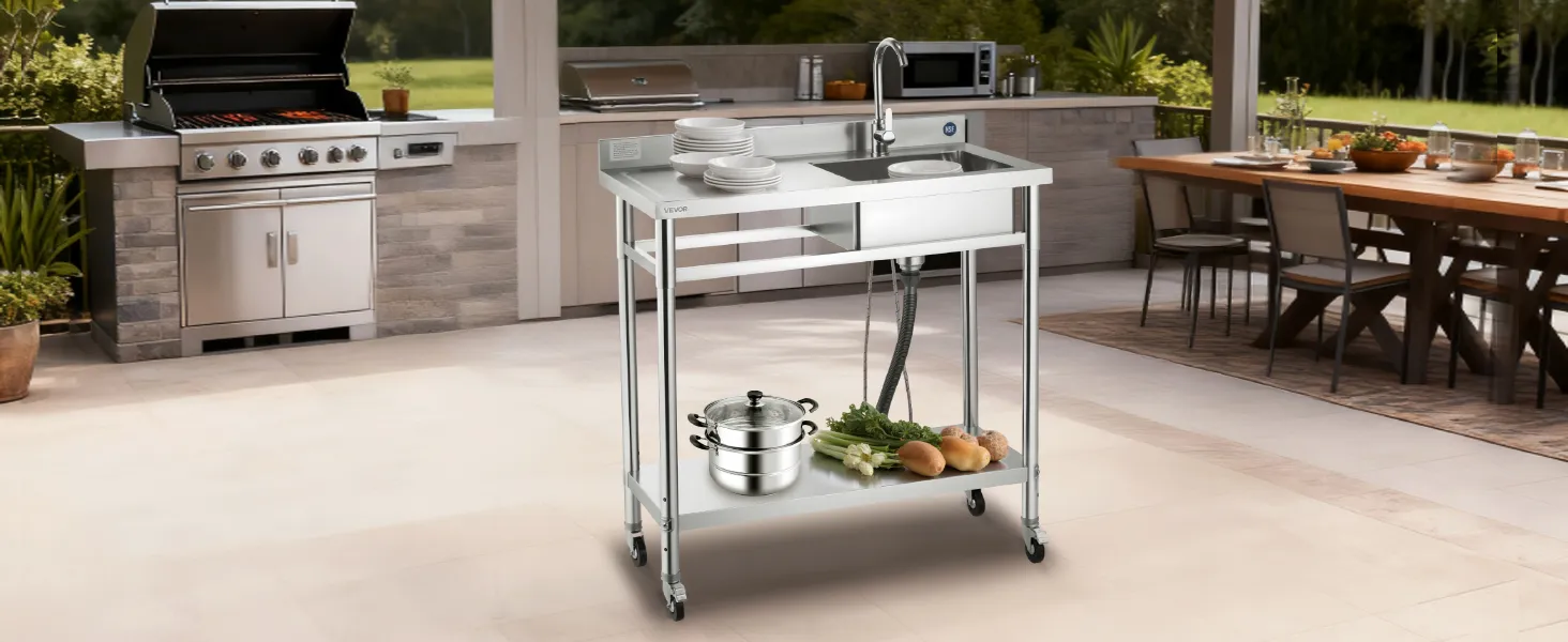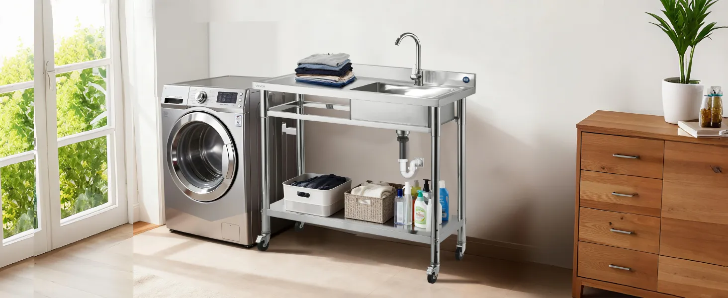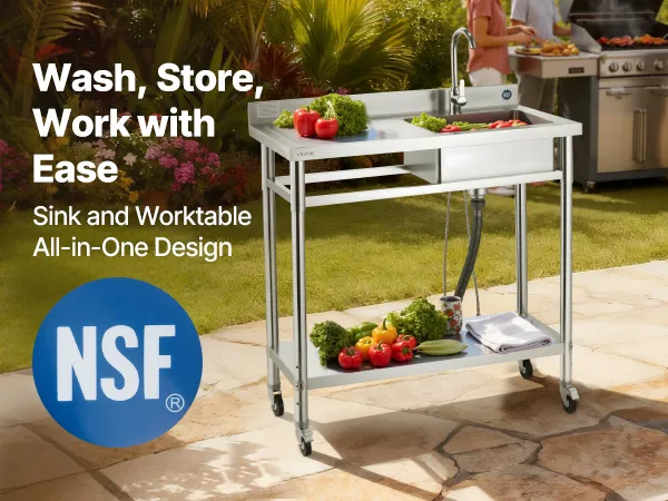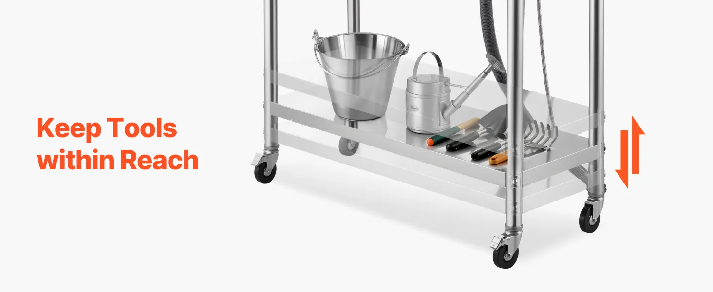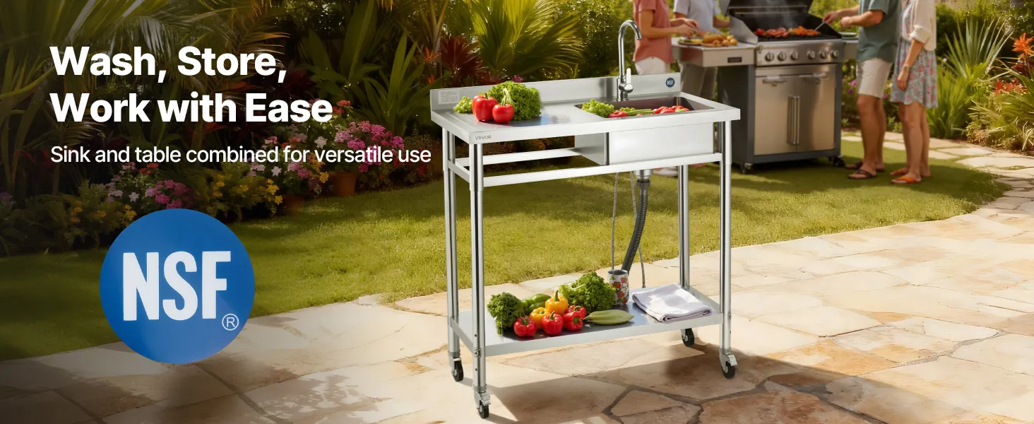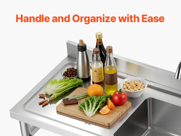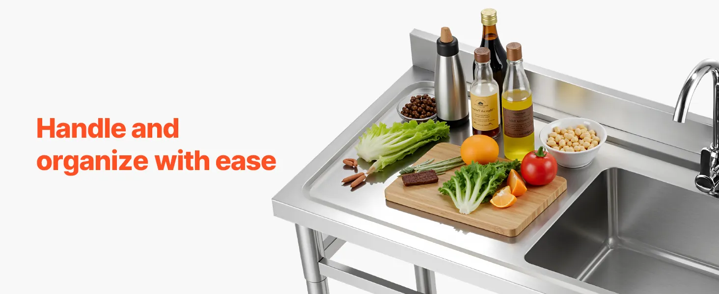 The all-in-one design combines worktable, sink, and adjustable storage shelf, making washing and organizing effortless. The spacious sink handles a variety of cleaning tasks, while the adjustable bottom shelves provide flexible storage for different items, adapting easily to multiple scenarios.