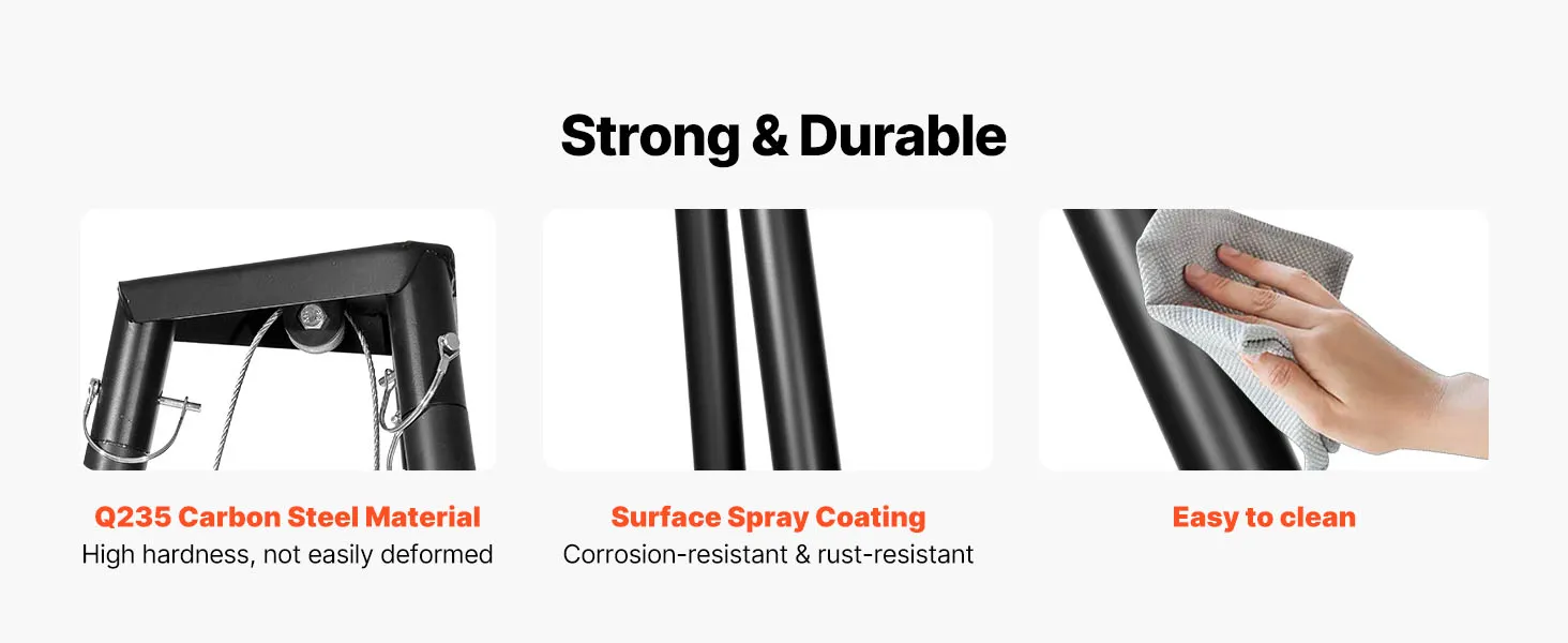 Made from high-strength Q235 carbon steel, this hunting game hoist is highly durable and won't bend or deform under heavy loads. The spray-coated surface resists corrosion and rust, and it's easy to clean after use.