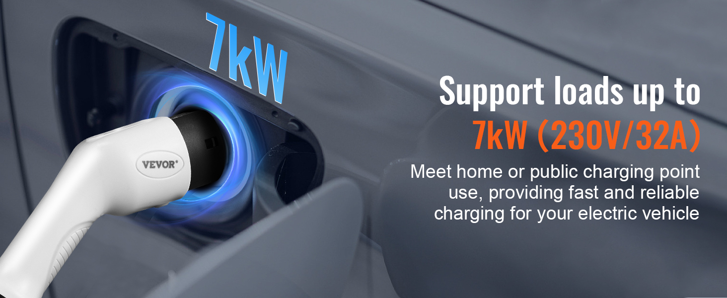 VEVOR EV car charging cable is compatible with all type 2 models, plug and play, and is a dependable travel companion. The storage bag solves all your travel and outdoor emergency charging problems. When you are ready to charge again, you will already know where to go!