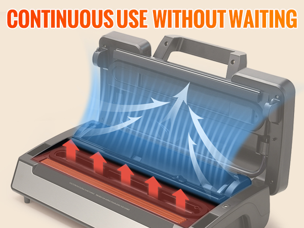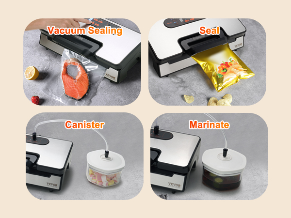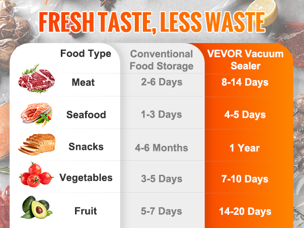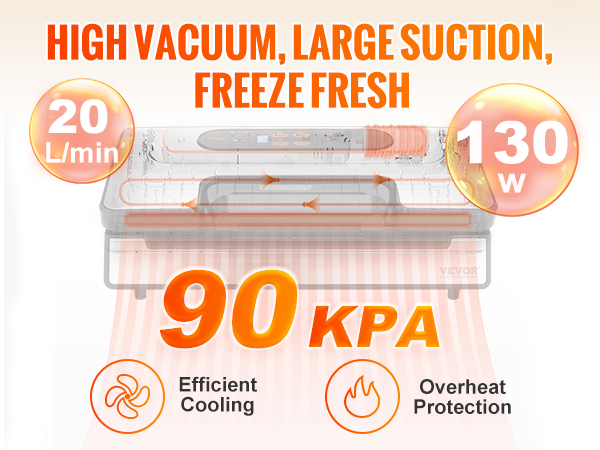 Introducing VEVOR vacuum sealer machine! It will become your ultimate kitchen companion that keeps your food fresh for longer! With a special cooling system, it's built to handle continuous and repetitive use without overheating. Say goodbye to freezer burn and hello to perfectly preserved food!