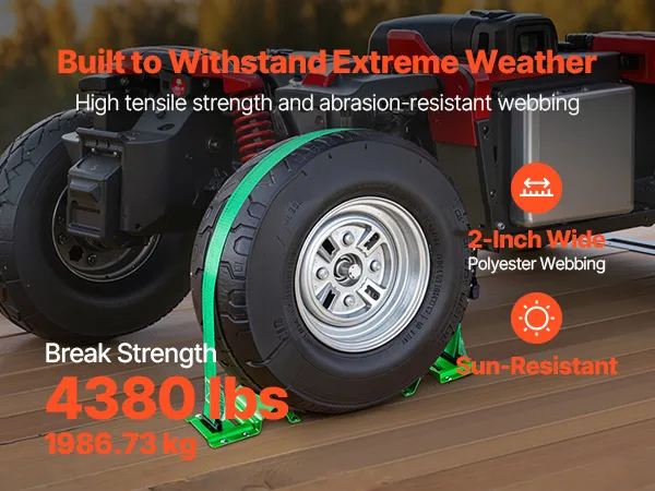 Go beyond basic tire straps. The axle straps of our wheel tie-down kit help minimize tire and suspension damage during transport, ideal for vehicles without handbrakes or on slopes. Each strap supports up to 1460 lbs/662 kg, ensuring your car stays steady while hauling or parked.