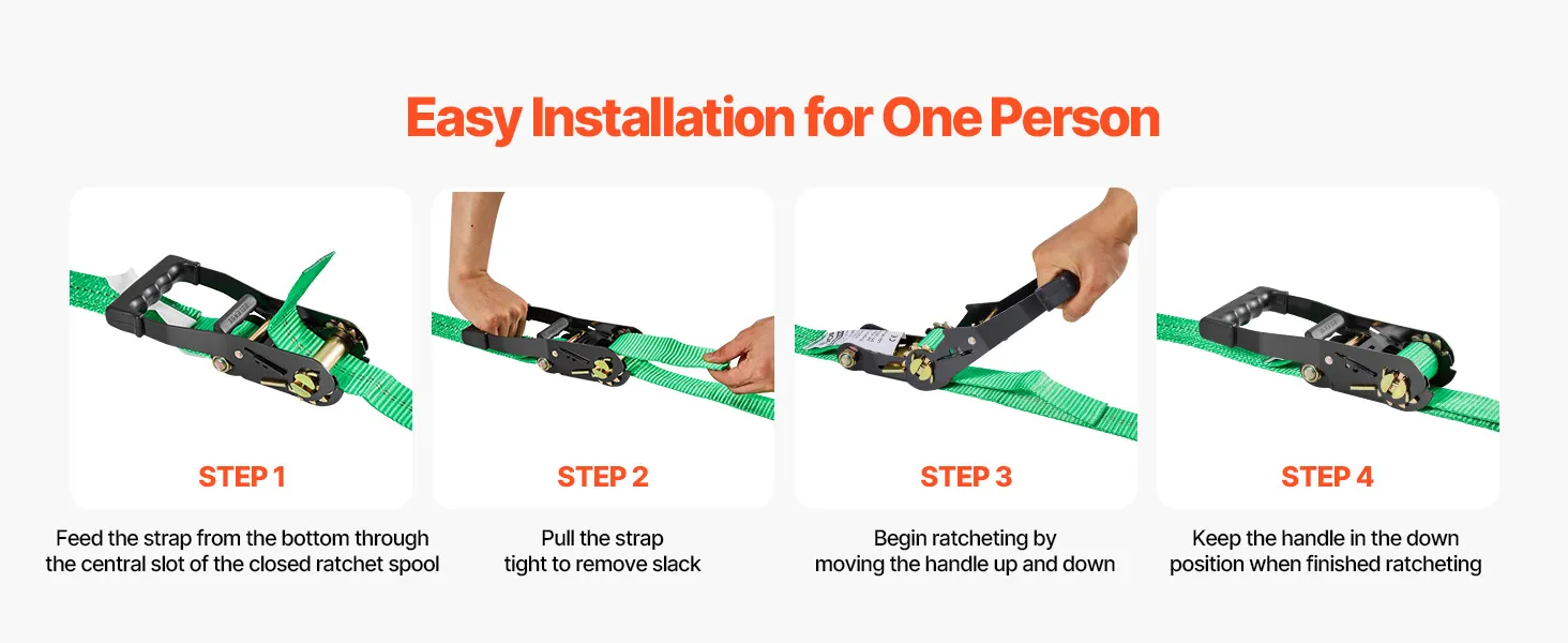 With a combination of long and short straps, the 2-piece utv tie down strap provides flexibility. It can create a customized cross pattern for balanced weight distribution and maximum stability.