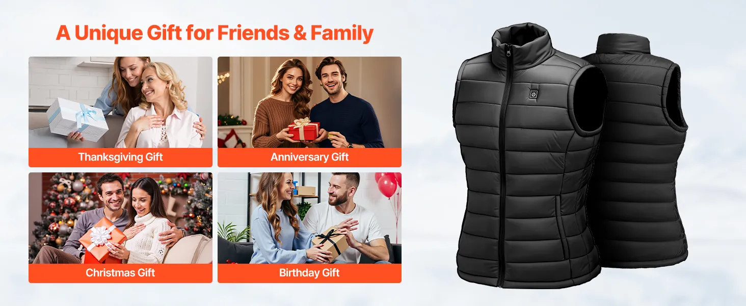 Our electric heated vest is suitable for sharing with family, friends, or important people on warm festivals and anniversaries, delivering warm wishes.