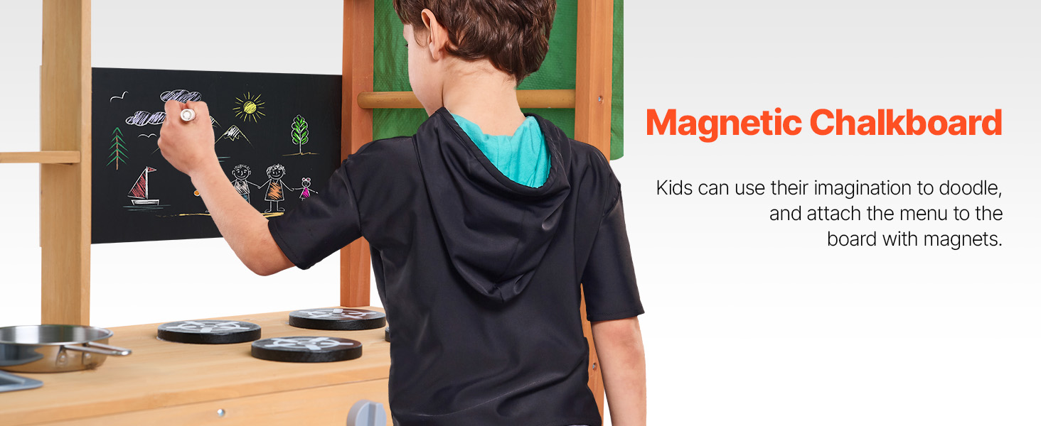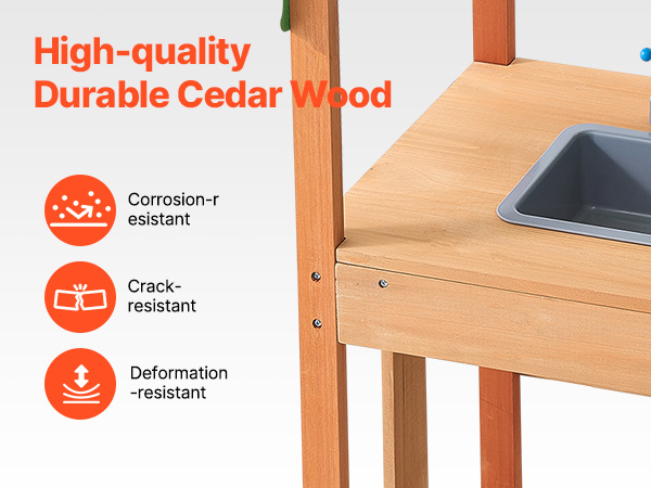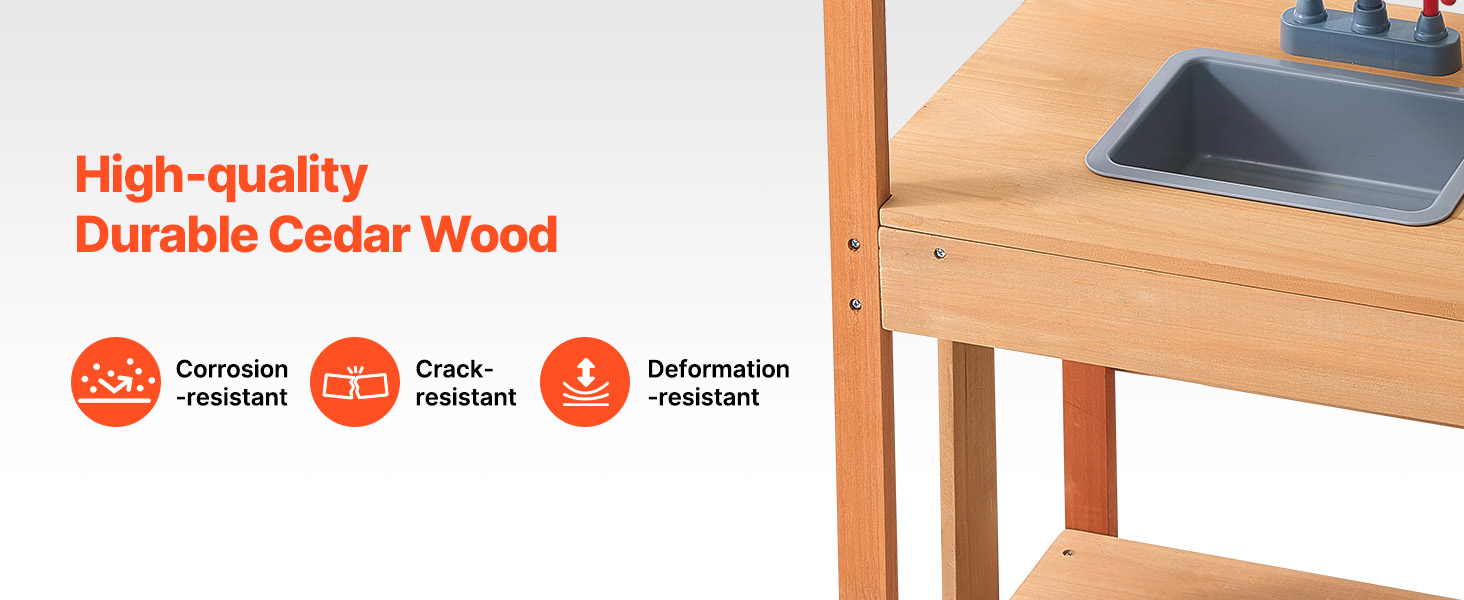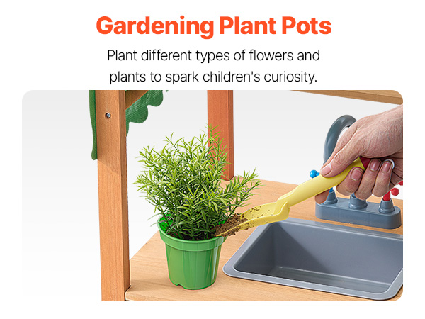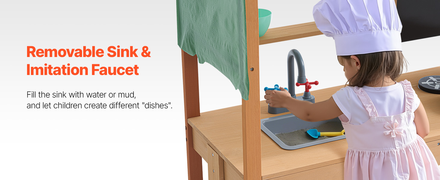 This toddler play kitchen is treated with outdoor-grade paint for water and corrosion resistance, providing a shaded area for kids to play. It's perfect for use in gardens, backyards, and lawns.