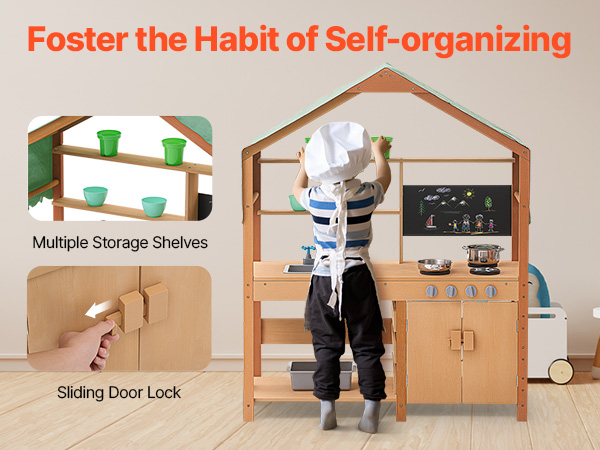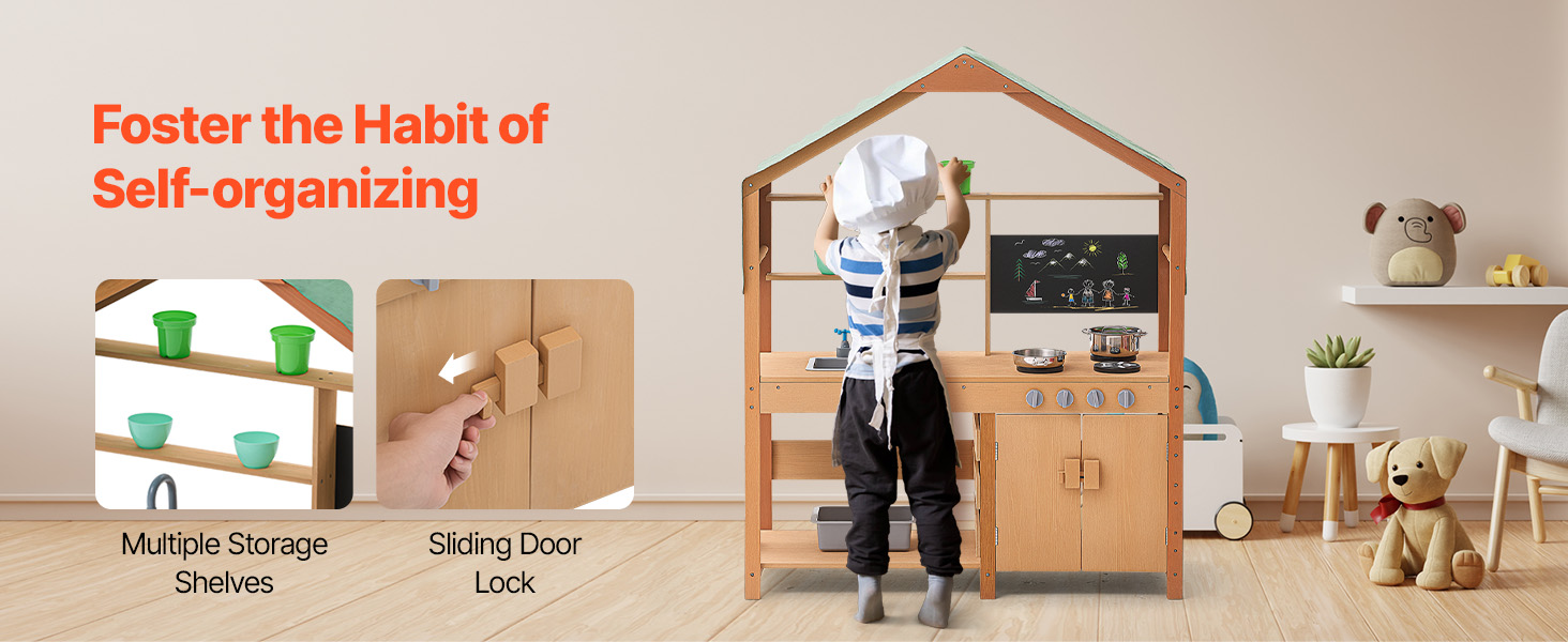 VEVOR Mud Kitchen for Kids, Wooden Toy Play Kitchen Set with Accessories, Outdoor Toddler Grocery Store Playset, Pretend Play Kitchen with Stoves, Planter Boxes, Sink, Faucet, Blackboard, Cookware Pot