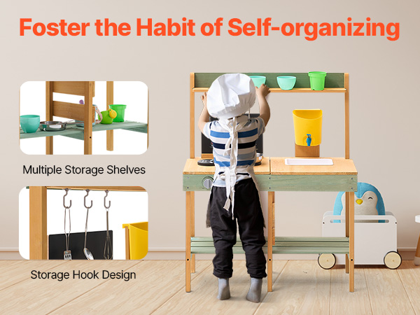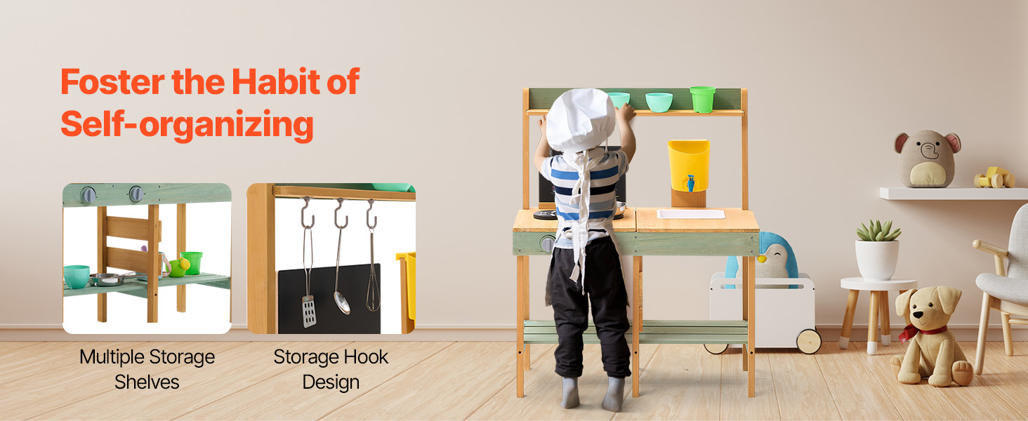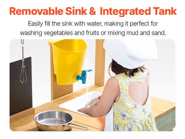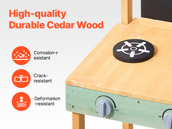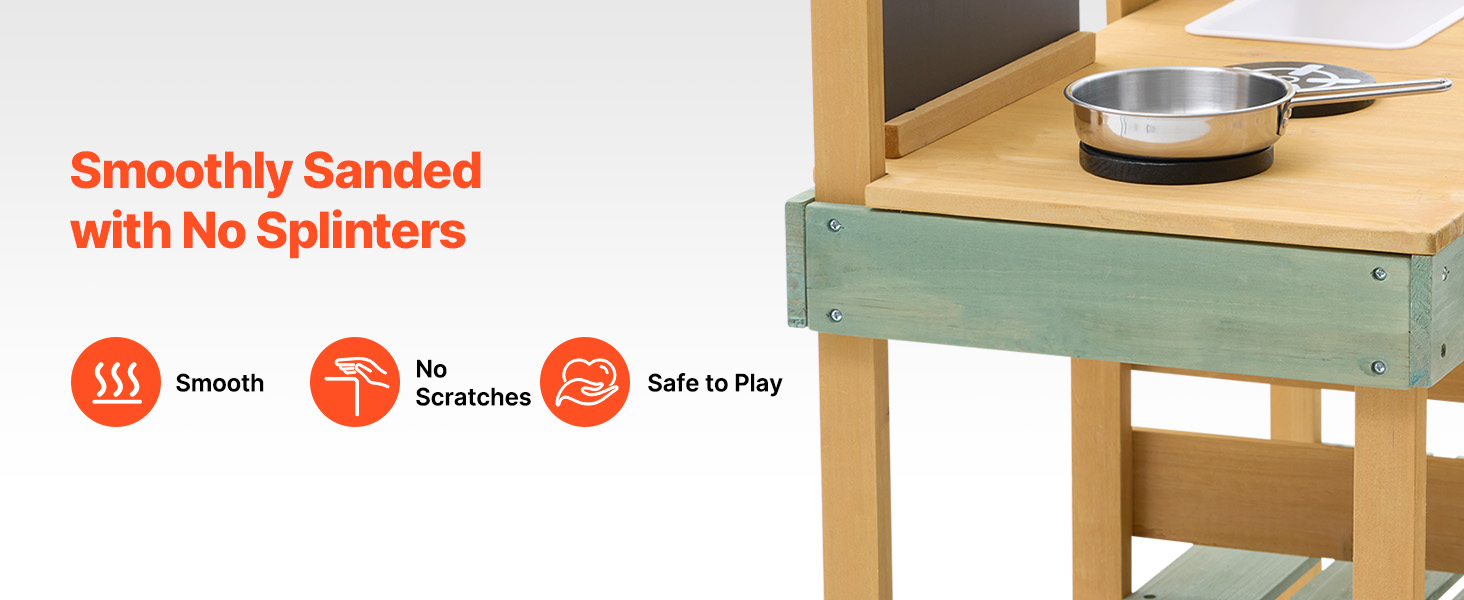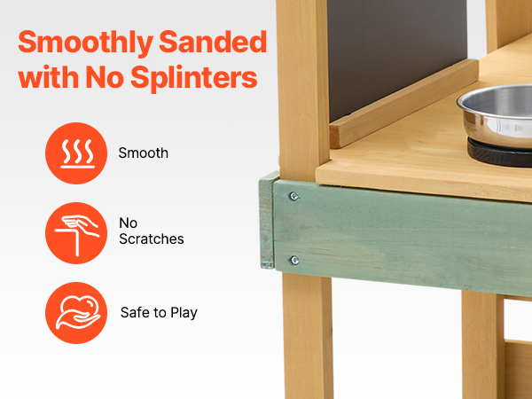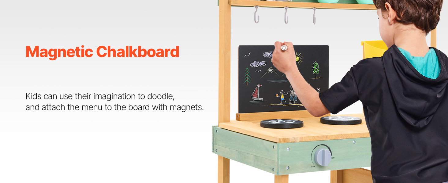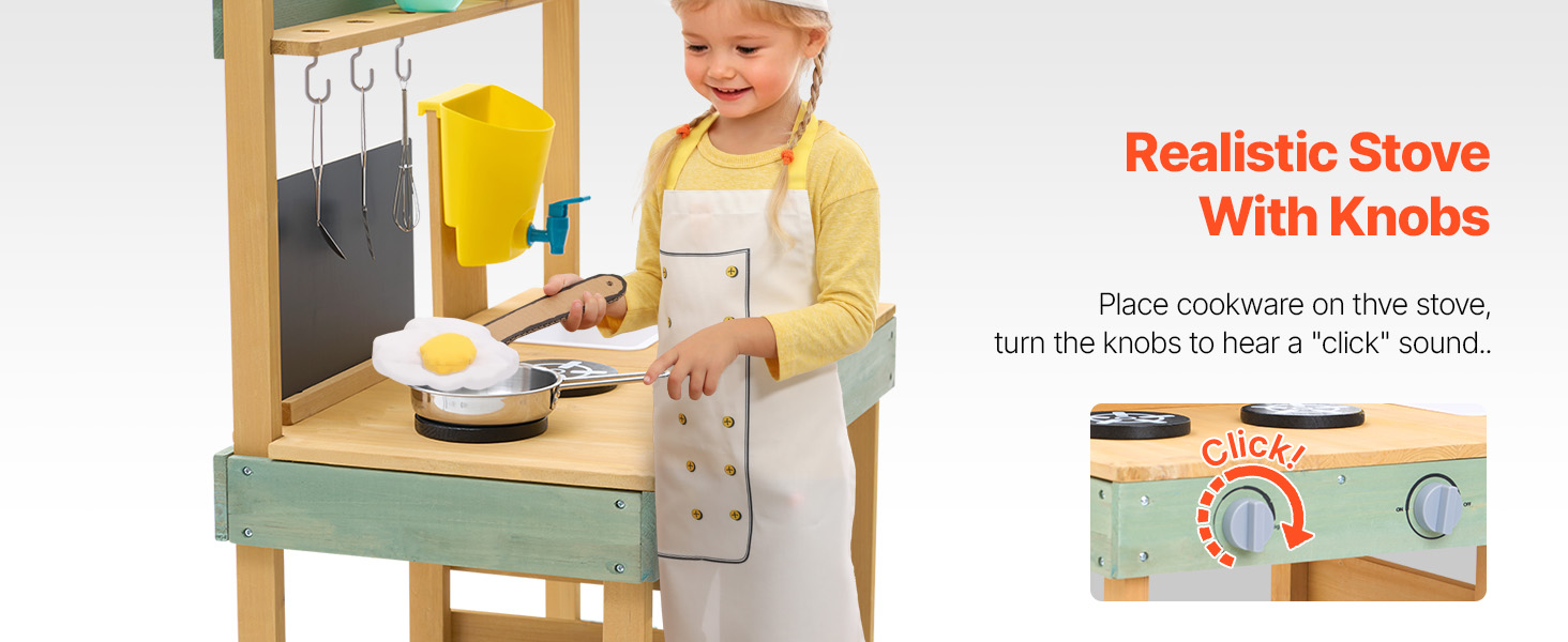 This imaginative toddler play kitchen is treated with outdoor-grade paint for water and corrosion resistance, making it ideal for outdoor environments like gardens, backyards, and lawns.