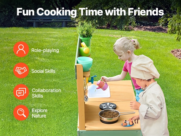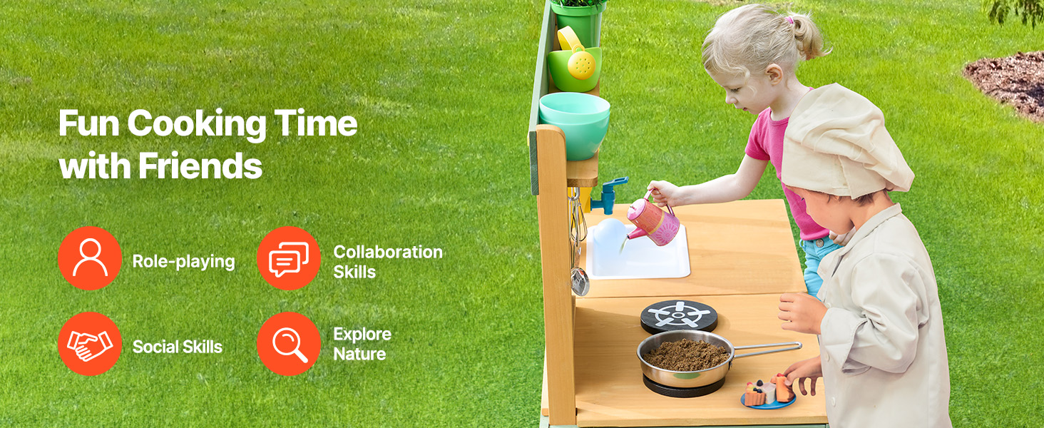 VEVOR Wooden Mud Kitchen Outdoor Toy Play Kitchen Set for Kids Pretend Playset
