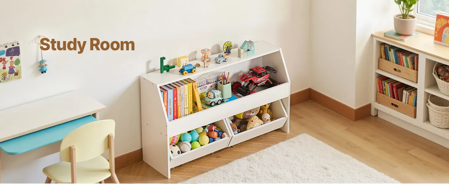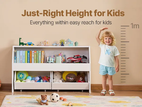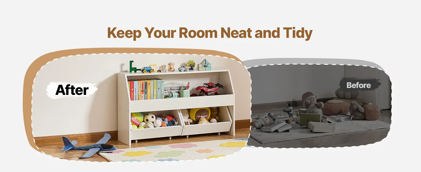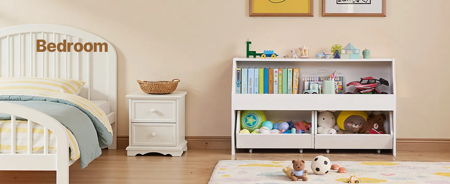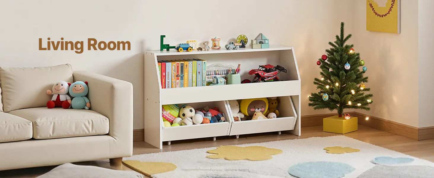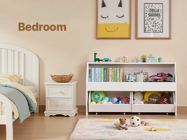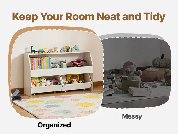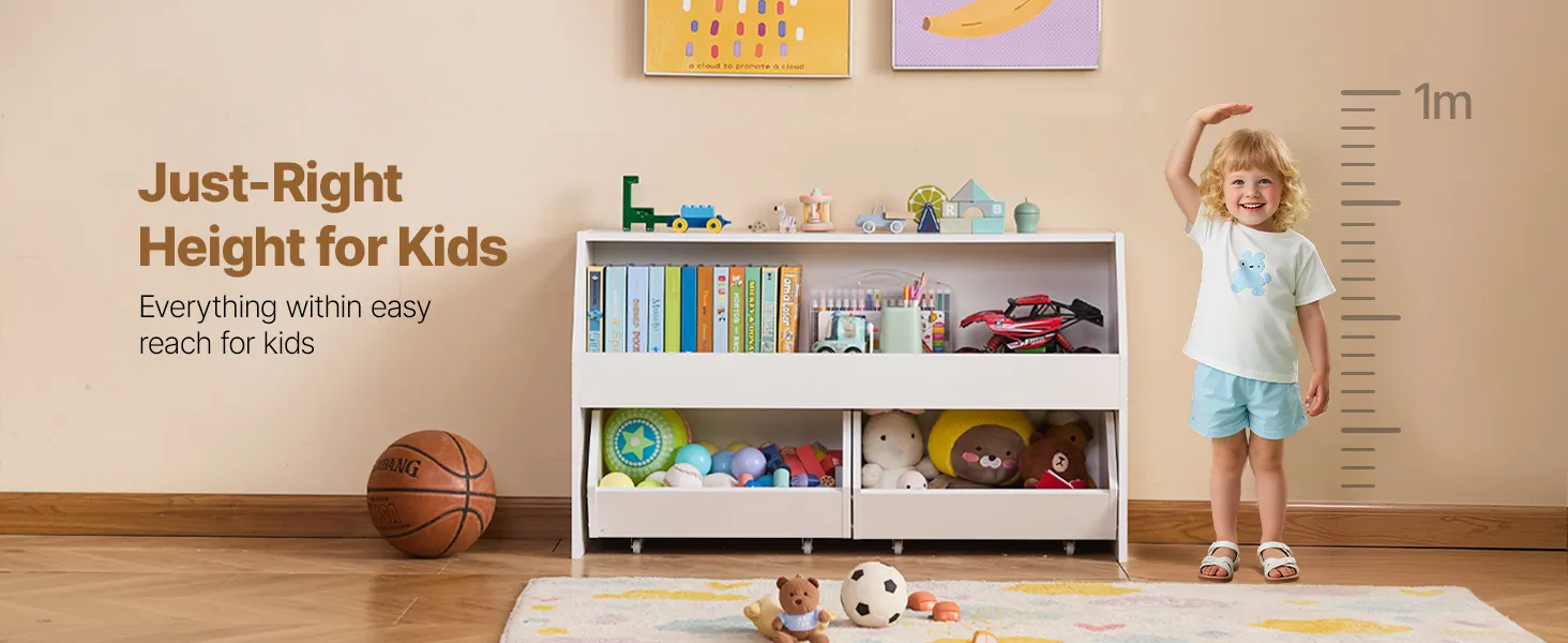 Equipped with wheels for easy mobility, allowing you to move the toy storage and organizer around effortlessly.